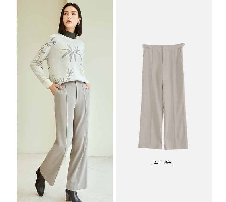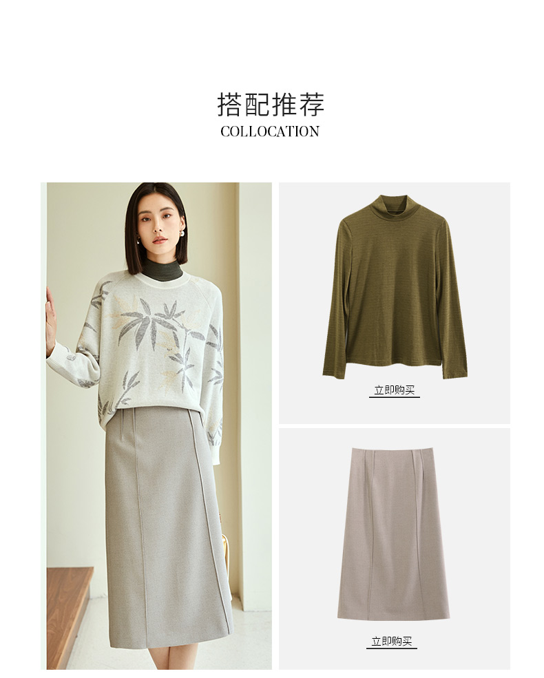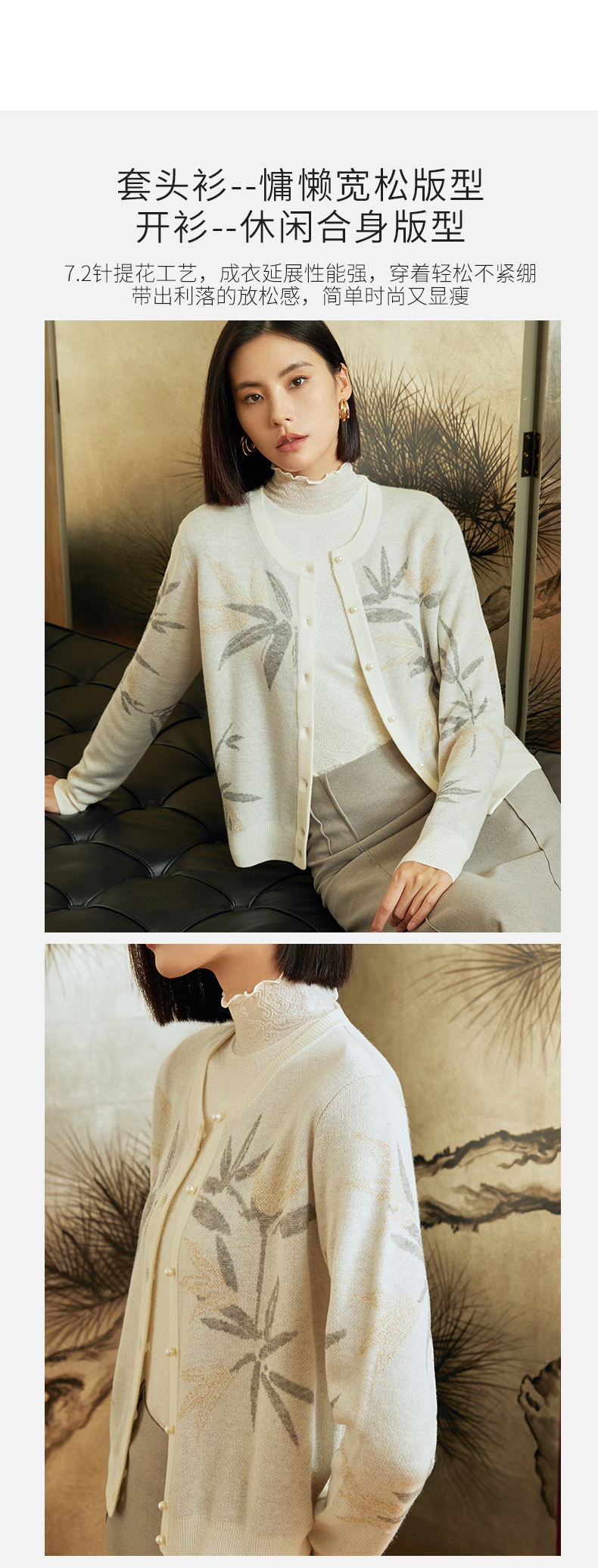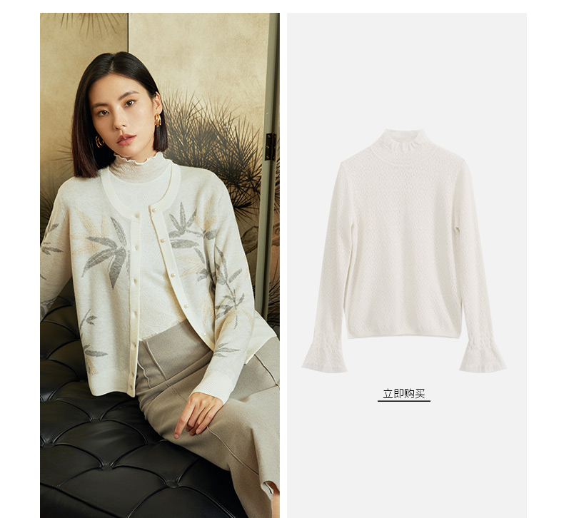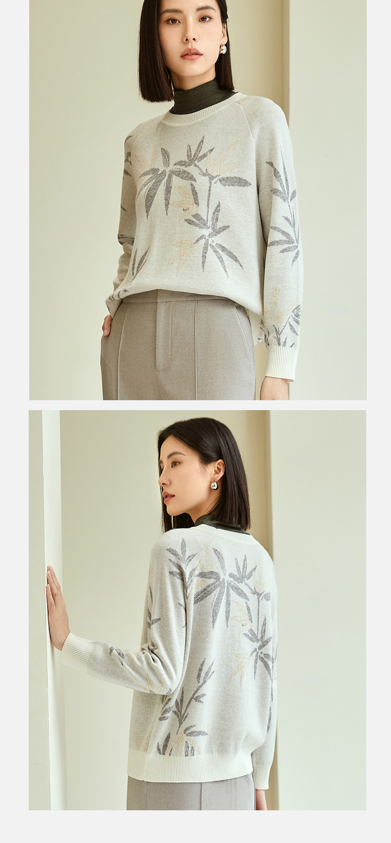 玳莎竹影提花针织衫女秋冬优雅复古设计感圆领长袖羊毛上衣 DD33301