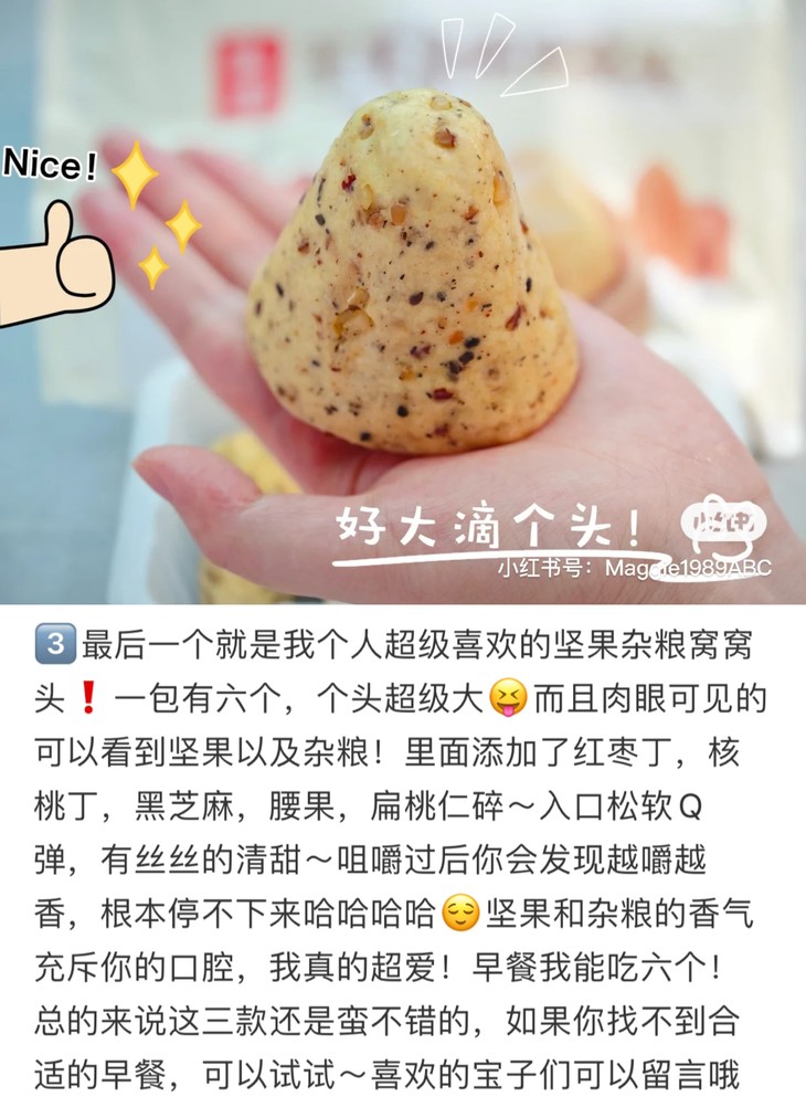 头厨又出了些新品,我已经塞满了冰箱,真的挤到一条缝都不剩,已经挑了些上架,没想到还能陆续试到好吃的!满口奶香的鲜奶馒头、扎实丰富的坚果杂粮窝窝头,还有美苓粥,更是一百分推荐,那炒米,一泡,太香了,简直粥粥的灵魂!