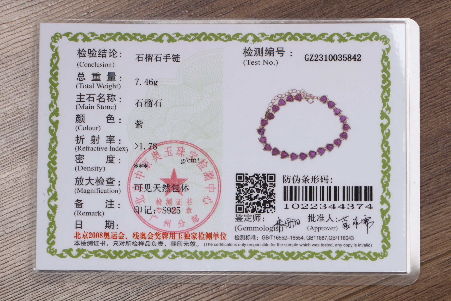 紫牙乌石榴石手链,925银镶