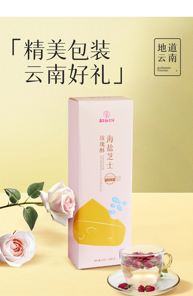 嘉华鲜花饼 海盐芝士玫瑰酥礼盒 30g*4枚120g