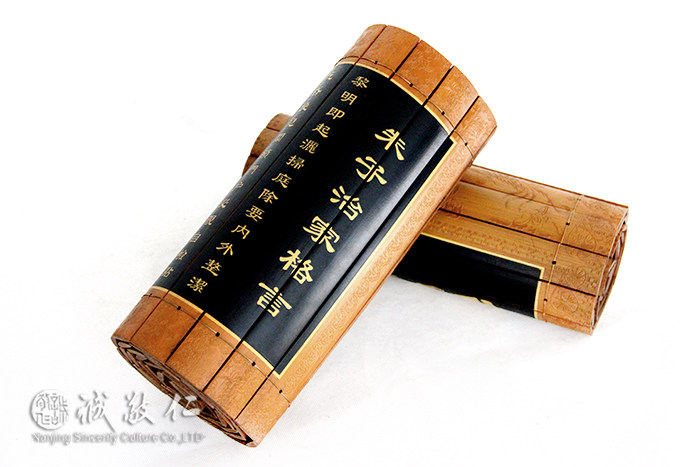 【基本信息】: 产品材质:上等竹 产品规格:30*148厘米 【产品文化】: 朱子治家格言 【内容介绍】: 黎明即起,洒扫庭除,要内外整洁。既昏便息,关锁门户,必亲自检点。一粥一 饭,当思来处不易.半丝半缕,恒念物力维艰。宜未雨而绸缪,毋临渴而掘井。 自奉必须俭约,宴客切勿留连。器具质而洁,瓦缶胜金玉。饮食约而精,园蔬胜 珍馐。勿营华屋,勿谋良田。 三姑六婆,实淫盗之媒.婢美妾娇,非闺房之福。奴仆勿用俊美,妻妾切忌艳妆 。祖宗虽远,祭祀不可不诚.子孙虽愚,经书不可不读。居身务期质朴,教子要 有义方。勿贪意外之财,勿饮过量之酒。 与肩挑贸易,勿占便宜.见贫苦亲邻,须多温恤。刻薄成家,理无久享.伦常乖 舛,立见消亡。兄弟叔侄,须多分润寡.长幼内外,宜法属辞严。听妇言,乖骨 肉,岂是丈夫.重资财,薄父母,不成人子。嫁女择佳婿,毋索重聘.娶媳求淑 女,毋计厚奁。 见富贵而生谗容者,最可耻.遇贫穷而作骄态者,贱莫甚。居家戒争讼,讼则终 凶.处世戒多言,言多必失。毋恃势力而凌逼孤寡,勿贪口腹而恣杀生禽。 乖僻自是,悔误必多.颓惰自甘,家道难成。狎昵恶少,久必受其累.屈志老成 ,急则可相依。轻听发言,安知非人之谮诉,当忍耐三思.因事相争,安知非我 之不是,须平心遭暗想。 施惠勿念,受恩莫忘。凡事当留余地,得意不宜再往。人有喜庆,不可生妒忌心 .人有祸患,不可生喜幸心。善欲人见,不是真善.恶恐人知,便是大恶。见色 而起淫心,报在妻女.匿怨而用暗箭,祸延子孙。 家门和顺,虽饔飧不继,亦有余欢.国课早完,即囊橐无余,自得至乐。读书志 在圣贤,为官心存君国。守分安命,顺时听天。为人若此,庶乎近焉。 【悬挂方法】: 1、竹简两端的竹片背面有绳子,可直接挂在墙上的钉子或者挂钩上; 2、还可以如书法作品一样加画框装裱,更显庄严; 3、如不挂墙上,可直接展开,靠在橱窗或墙壁上。 |