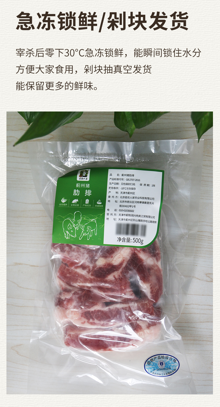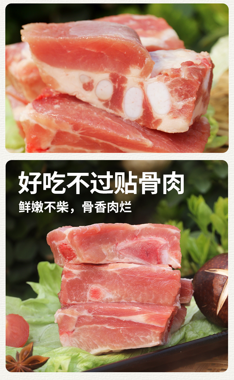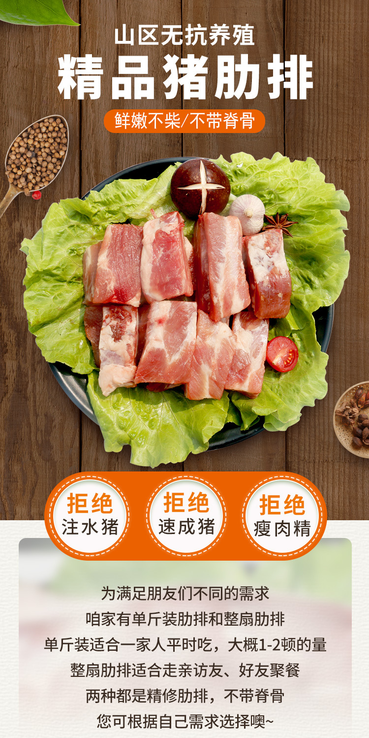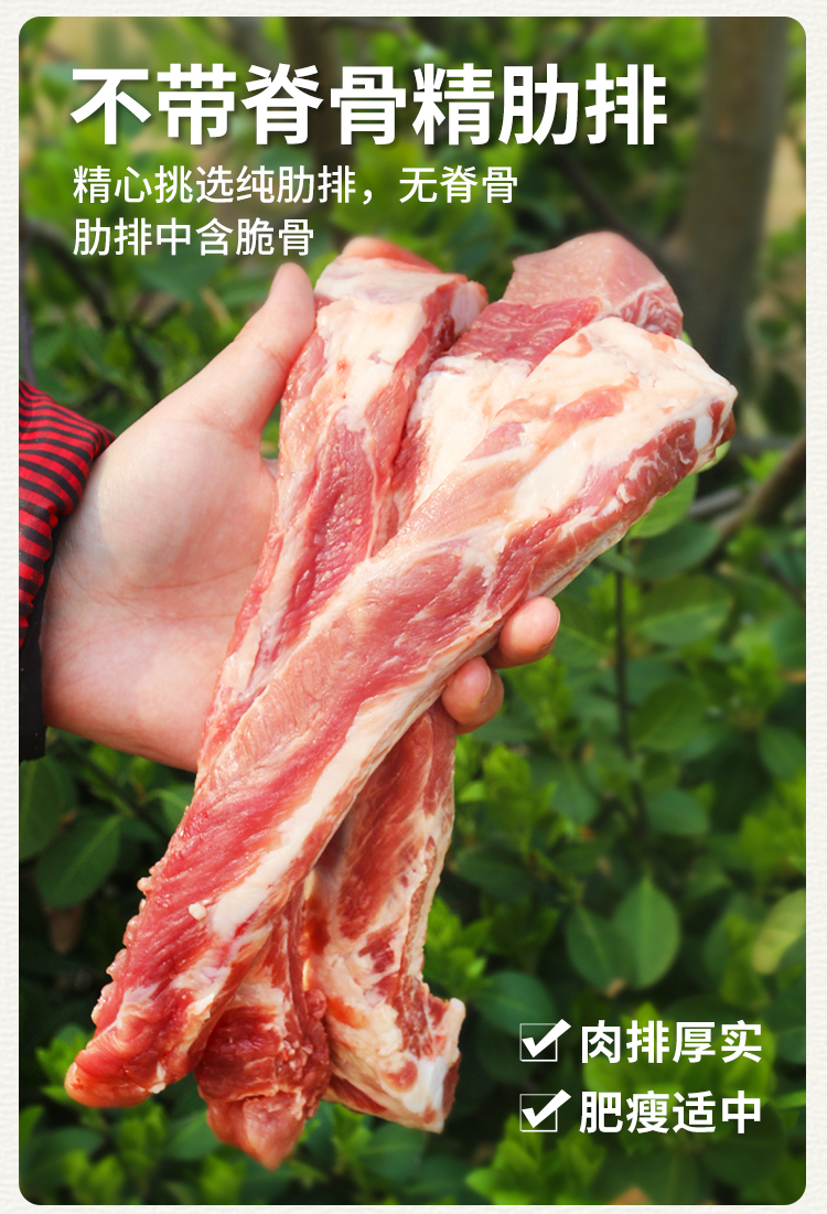 【3份包邮】安心猪纯肋排 无抗慢养 新鲜猪肋排中段 急冻锁鲜 切段猪排骨1斤