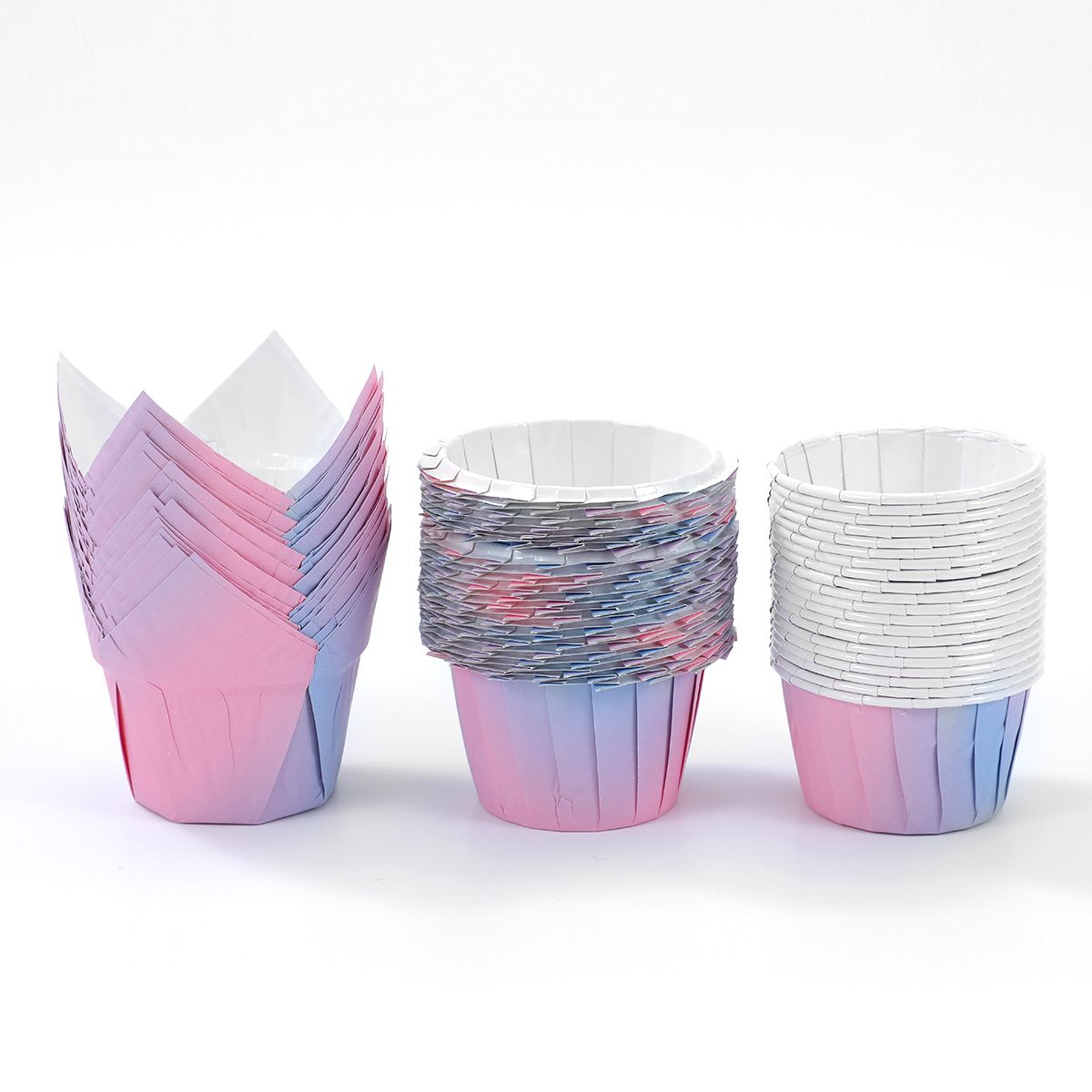 【100只】渐变色马芬杯蛋糕纸杯 家用甜品台杯子玛芬花边杯 烤箱郁金香纸杯
