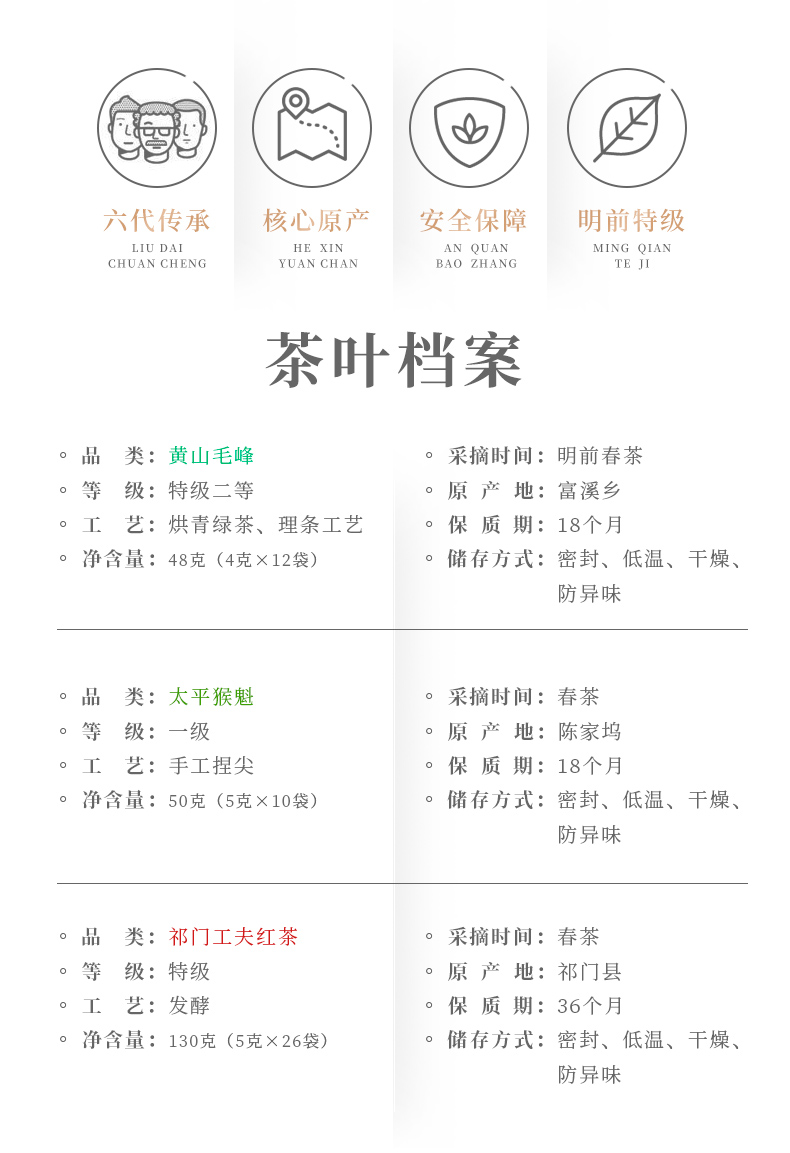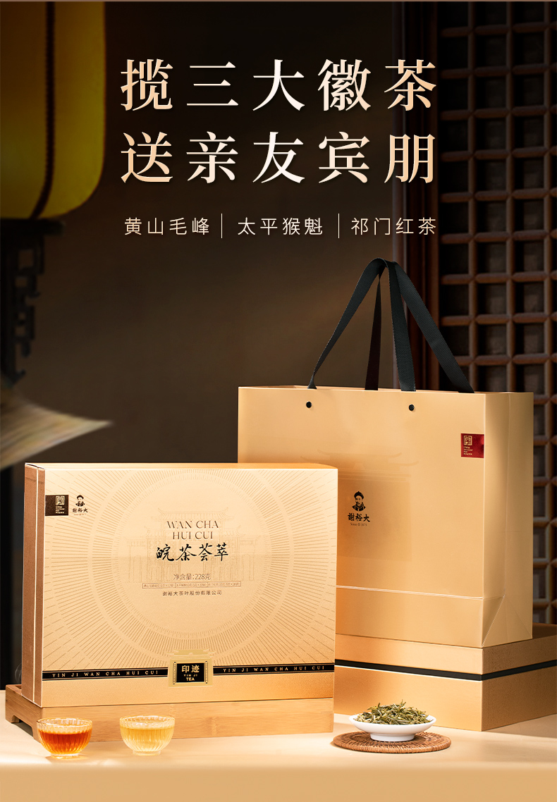 谢裕大皖茶荟萃茶叶礼盒228g黄山毛峰太平猴魁祁门红茶组合装安徽茶礼