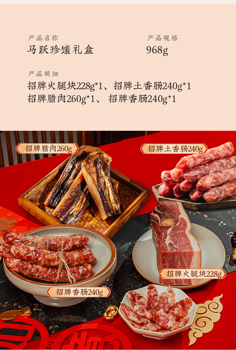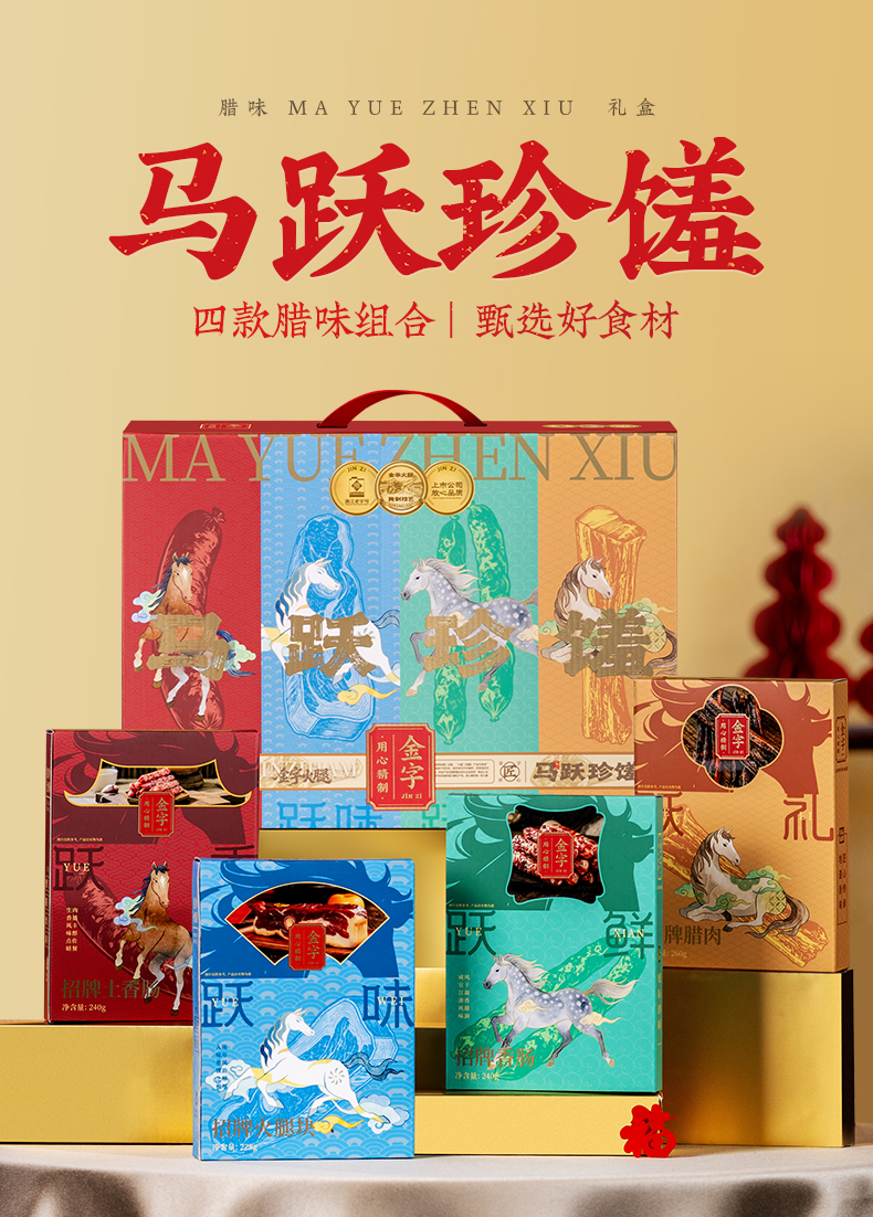 金字马跃珍馐礼盒968g招牌腊味年货浙江特产一盒四味伴手礼品