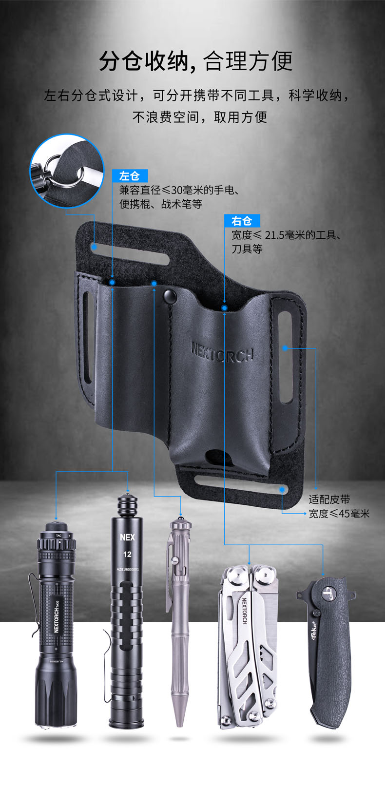 纳丽德(NEXTORCH)V40多功能牛皮套手电工具套EDC装备收纳套便携可挂腰