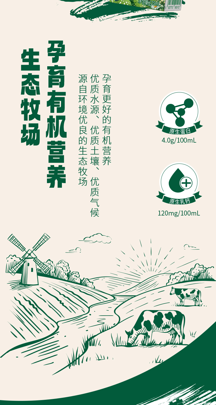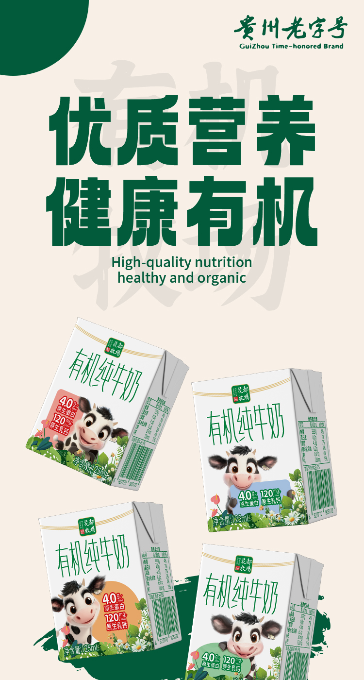 山花有机纯牛奶125mL*30盒4.0g蛋白质120mg原生乳钙