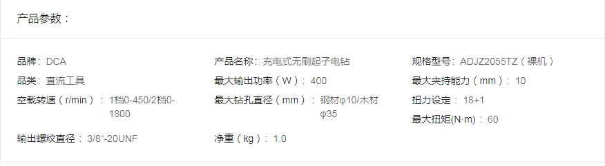 DCA 20V 充电式 无刷起子电钻 ADJZ2055TZ