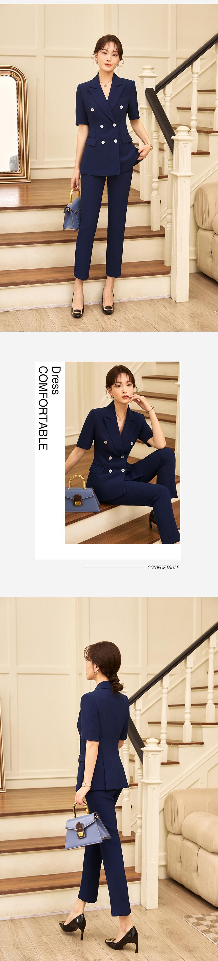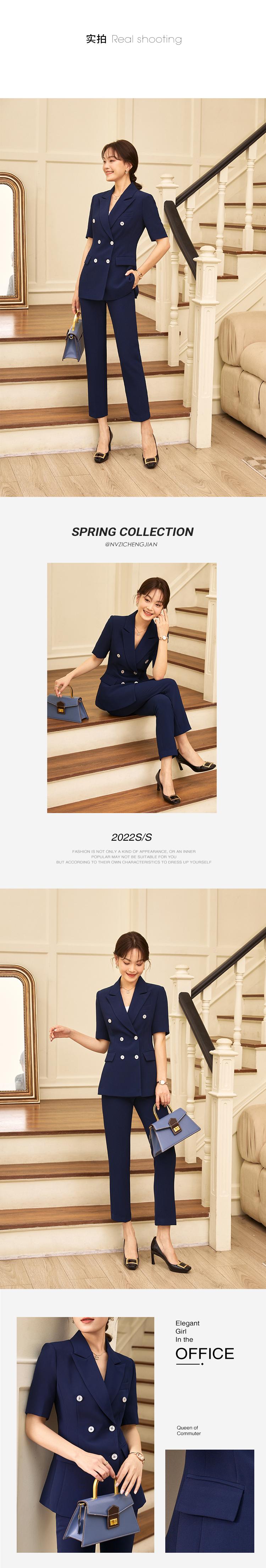 短袖职业藏青色西装西裤套装商务通勤修身显瘦2022夏季