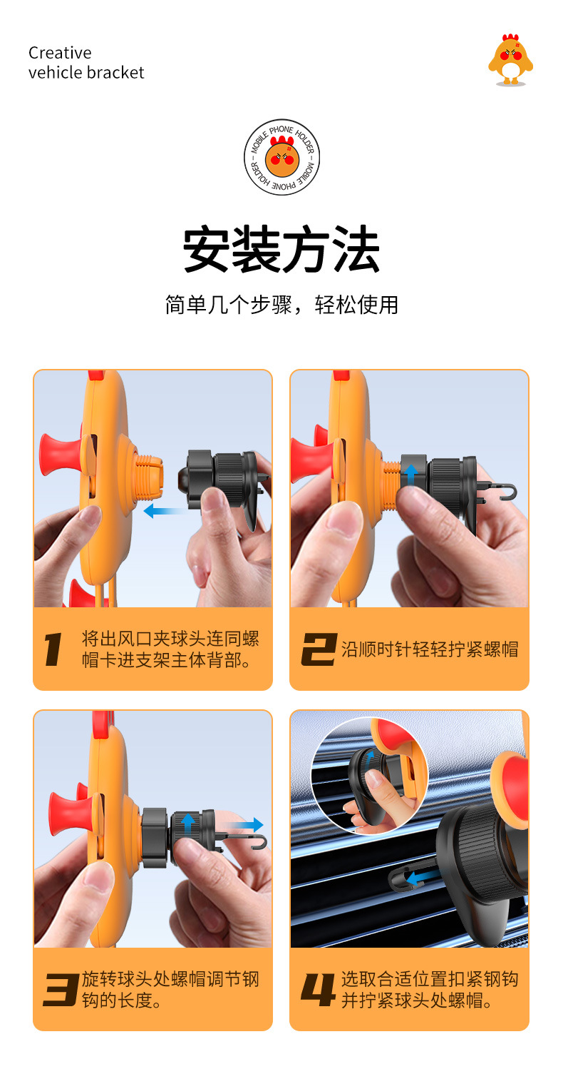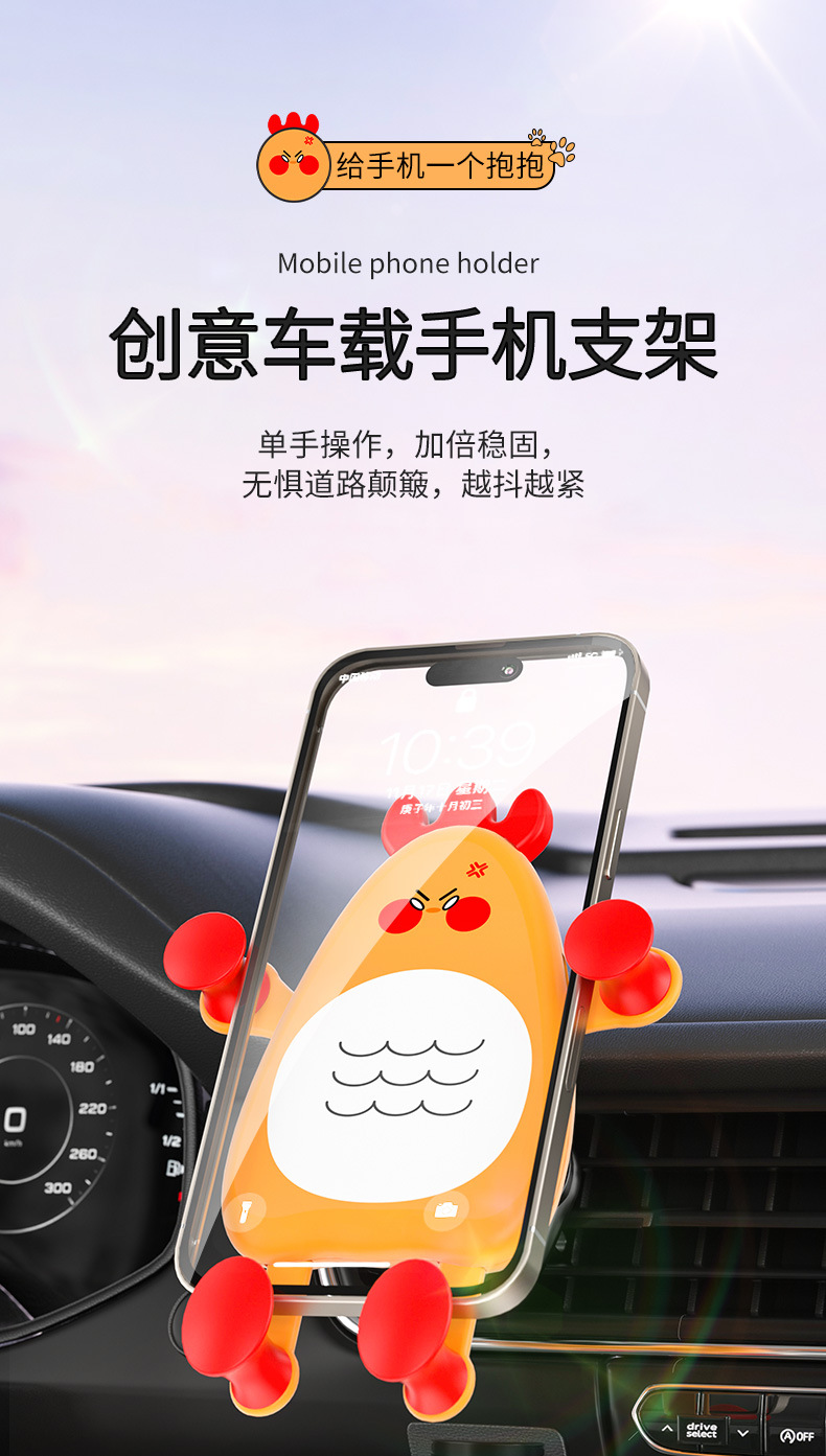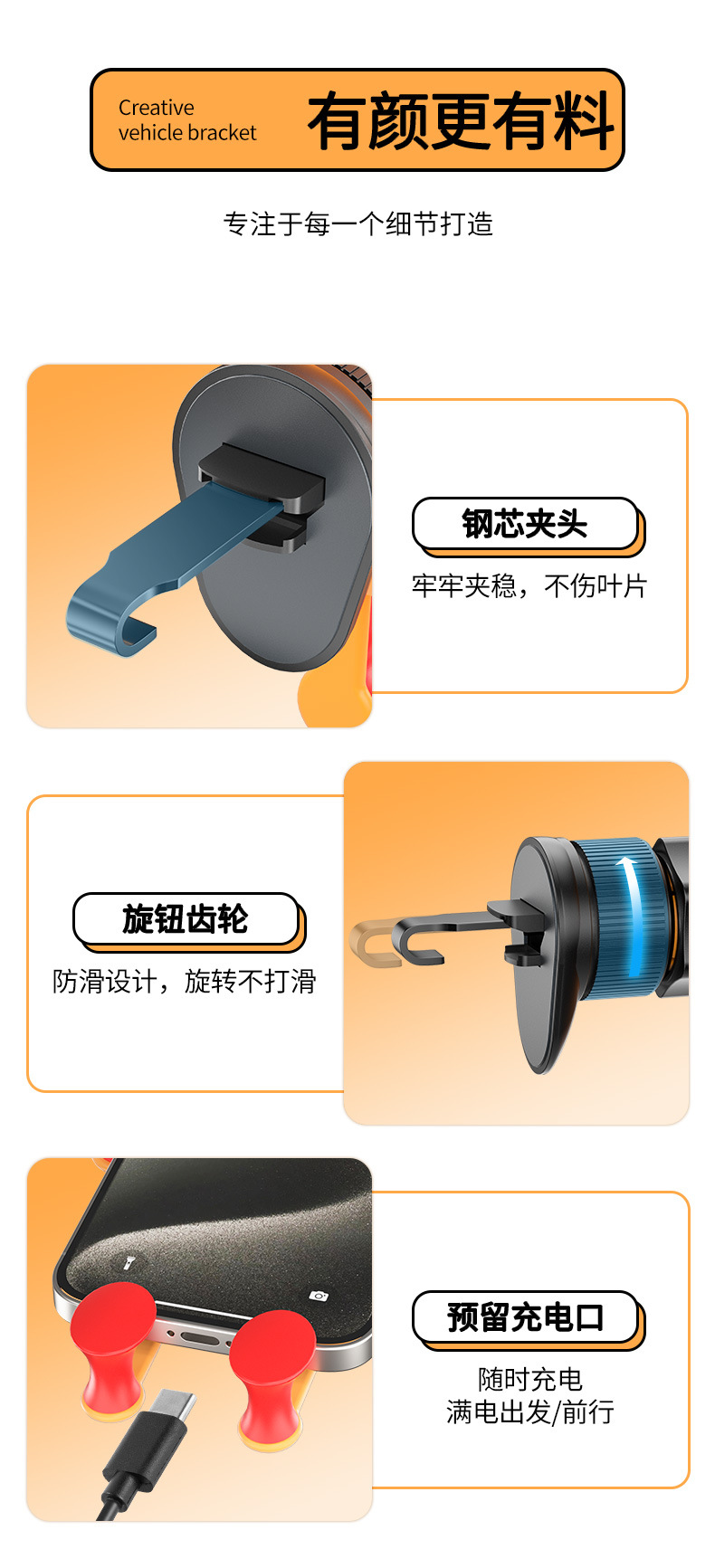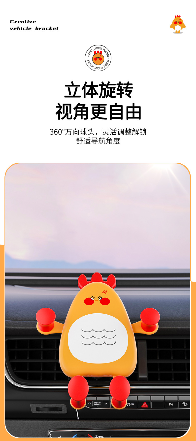 严选【可爱萌宠360度旋转】车载手机支架汽车多功能出风口导航固定支架灰色1个