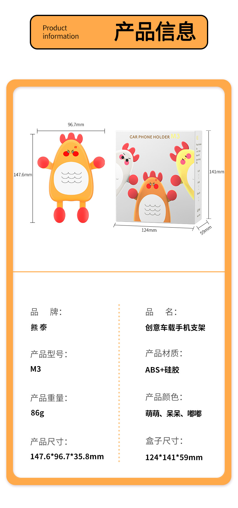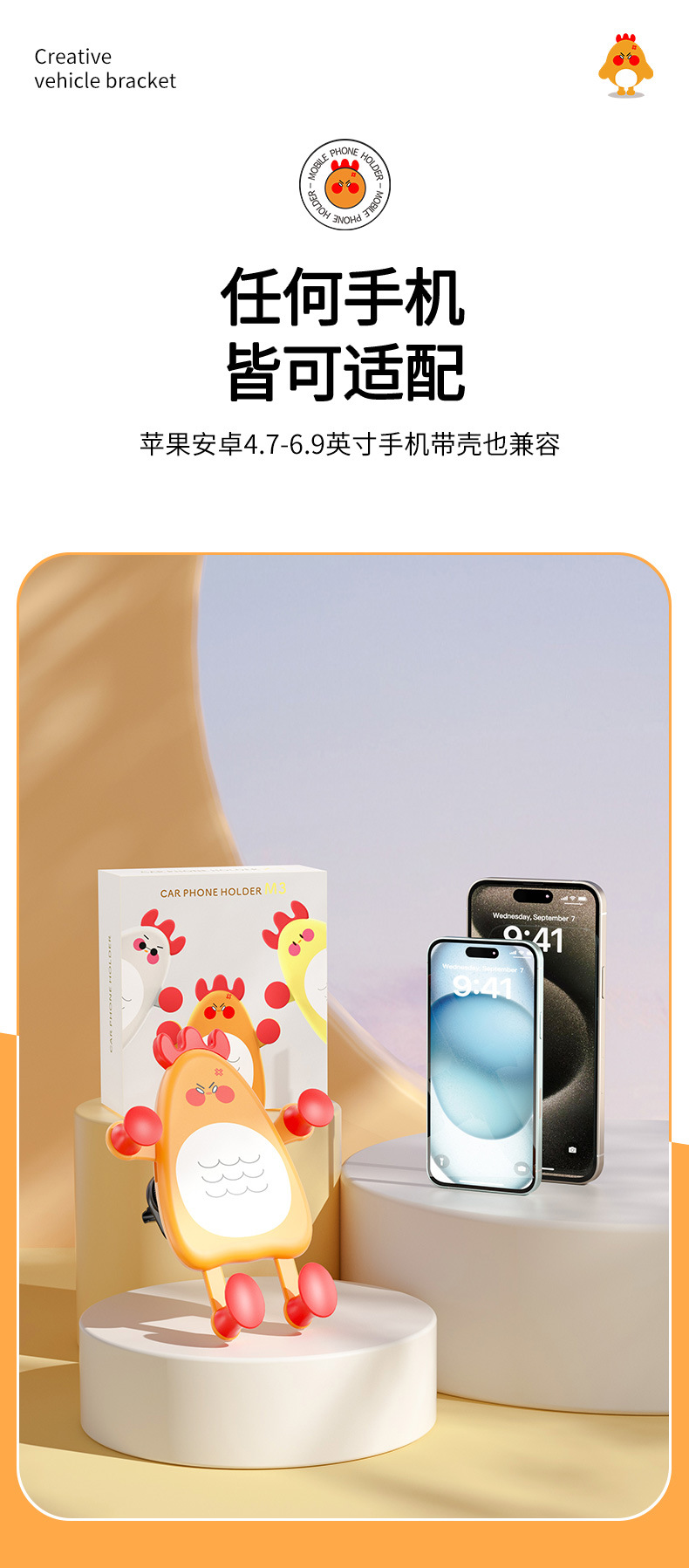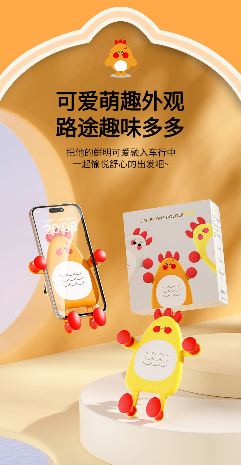严选【可爱萌宠360度旋转】车载手机支架汽车多功能出风口导航固定支架灰色1个