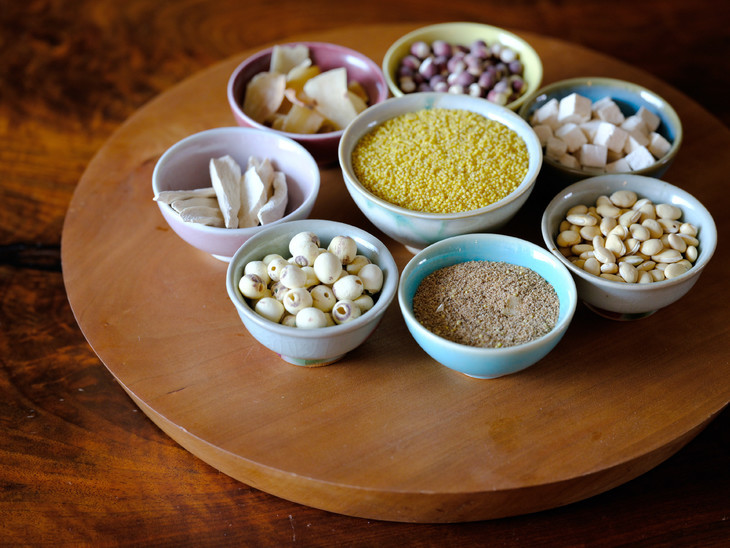 四神汤很平和,四神指的是山药、莲子、芡实、茯苓,一起补遗、增强元气值。