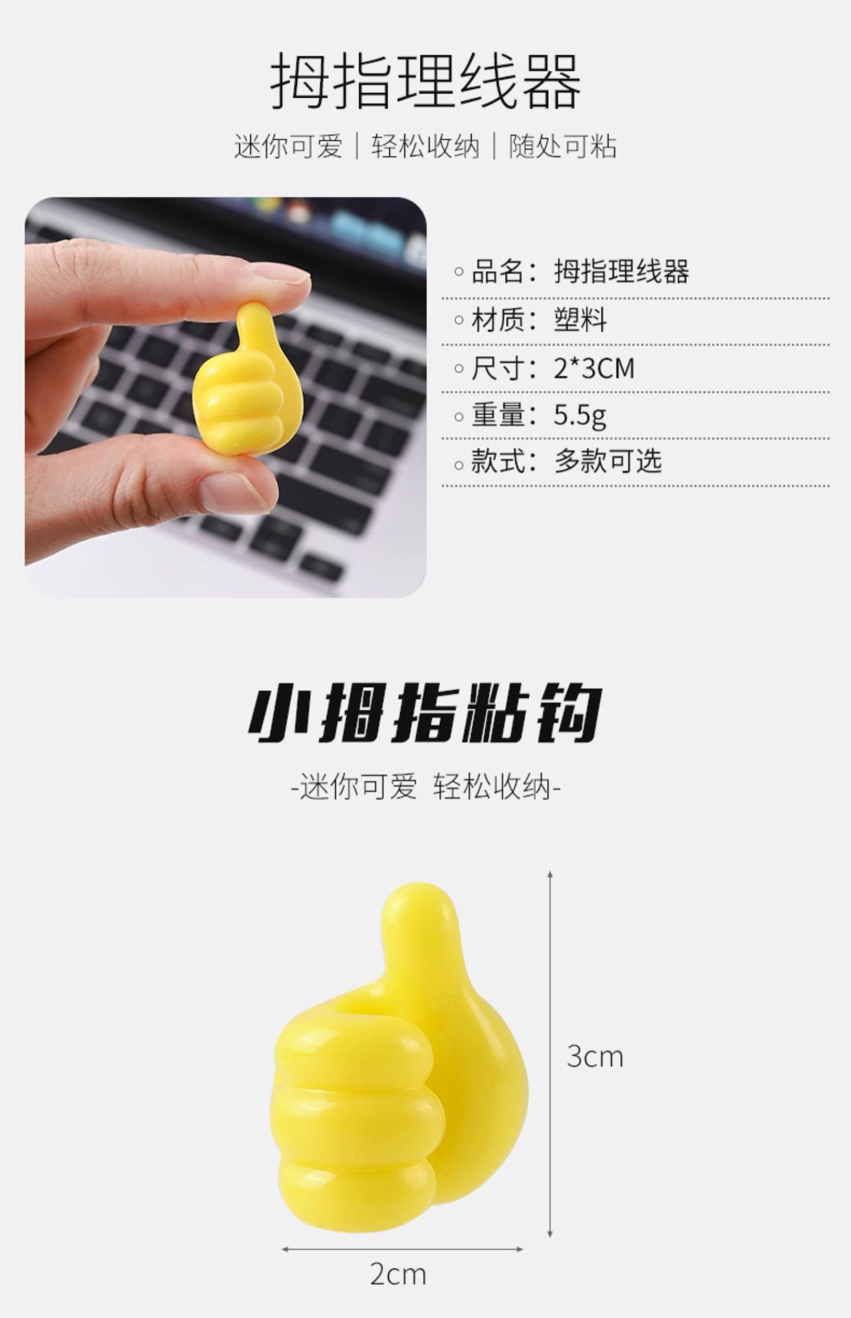 创意大拇指挂钩理线器固线器桌面数据线收纳固定器免打孔强力粘钩