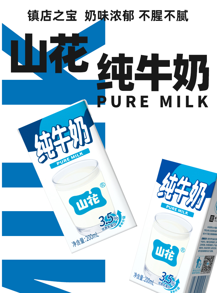 山花纯牛奶200ml*16瓶贵州老字号鲜牛奶营养丰富配料干净