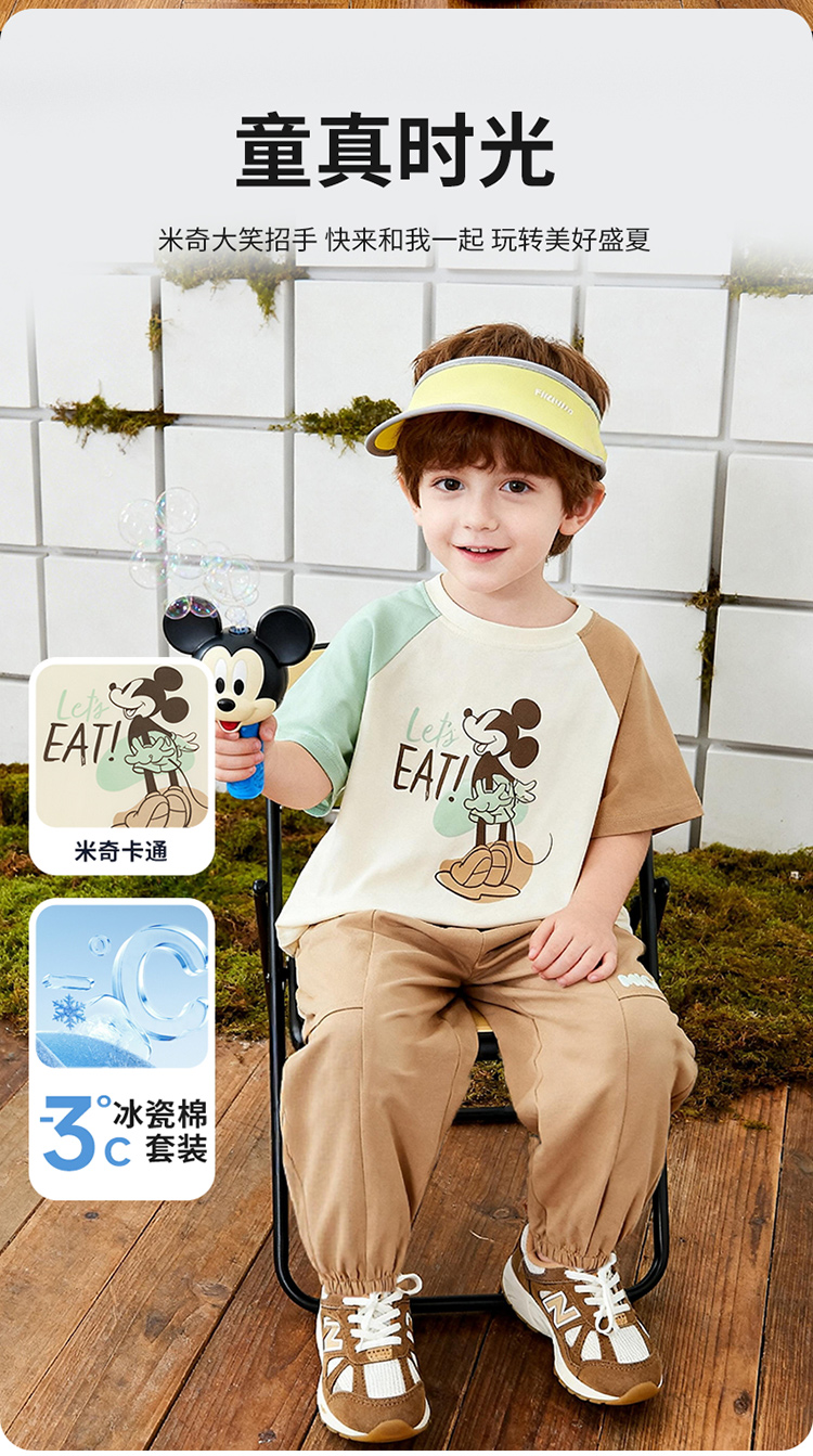 迪士尼夏日玩伴男童夏季短袖长裤套装ZD2FT024