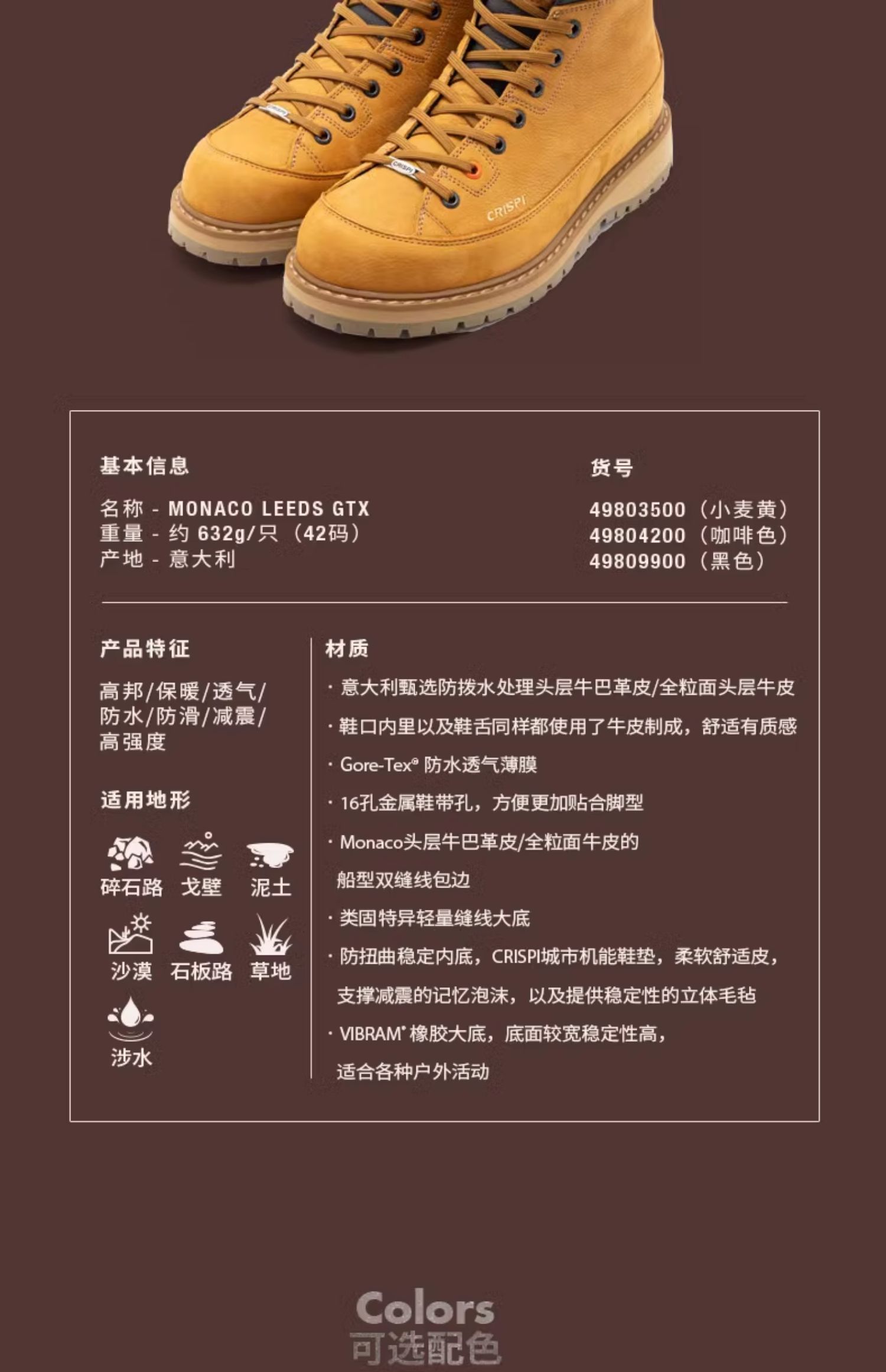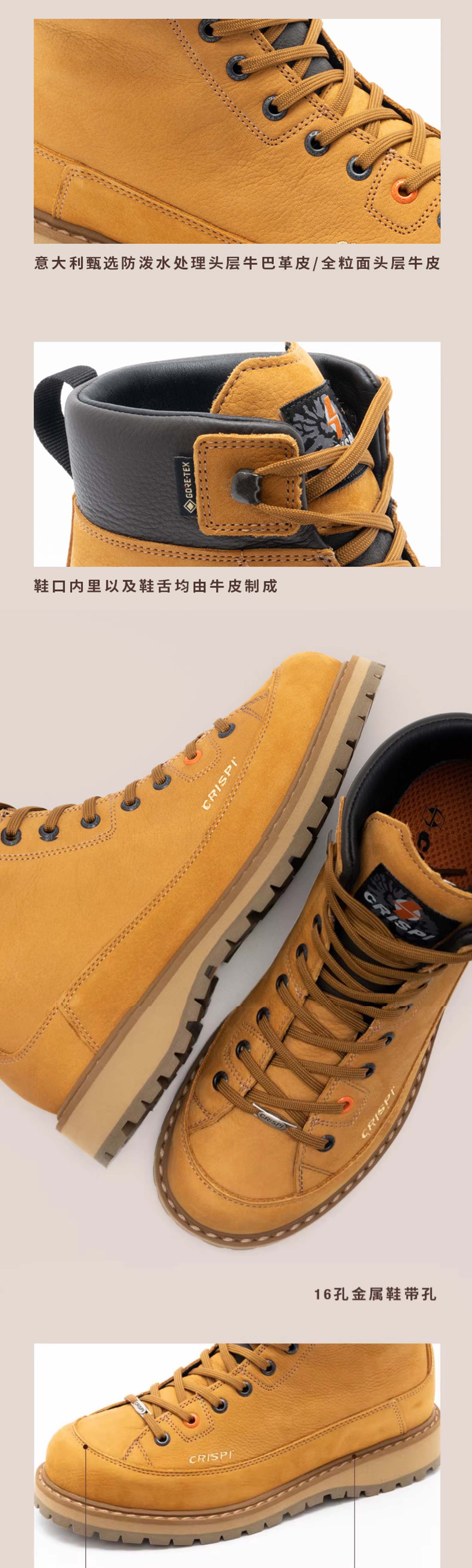 CRISPI春秋工装户外防水防滑徒步登山鞋大黄靴马丁靴 Monaco Leeds