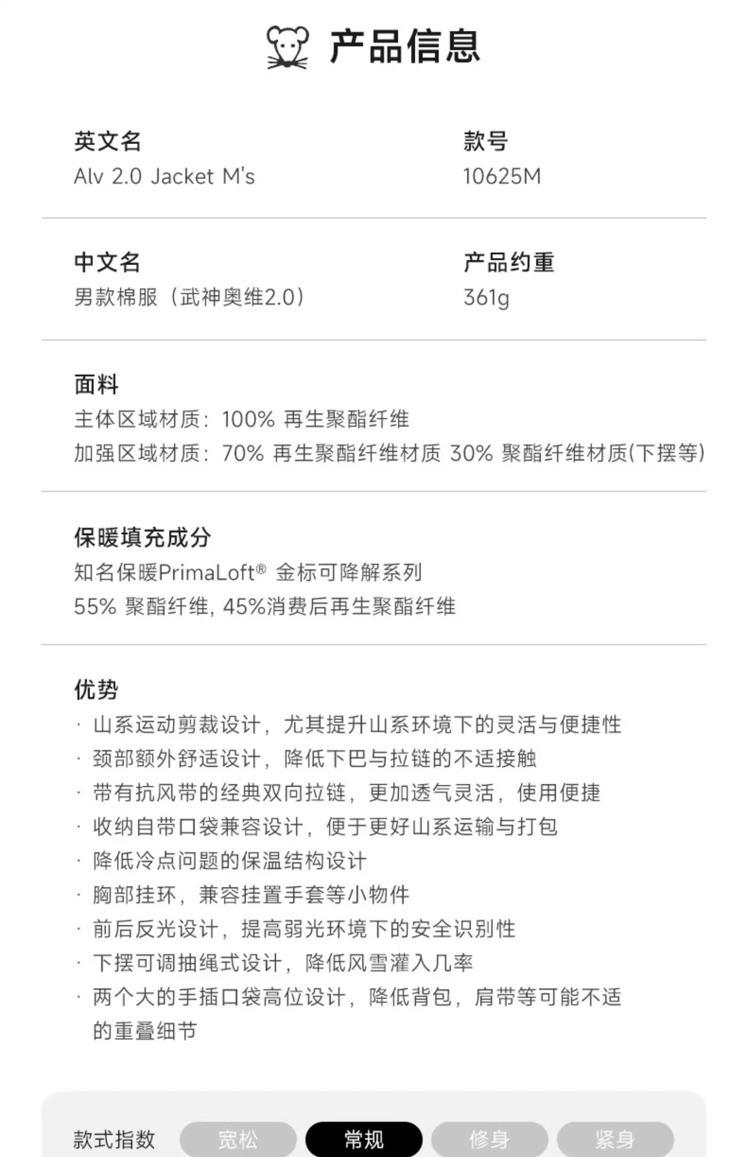 KLATTERMUSEN/攀山鼠武神奥维棉服男女款立领防风防寒棉衣10625M