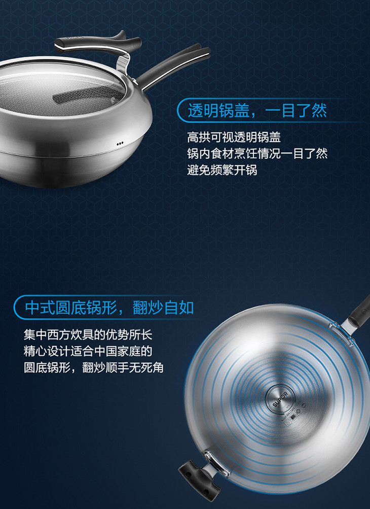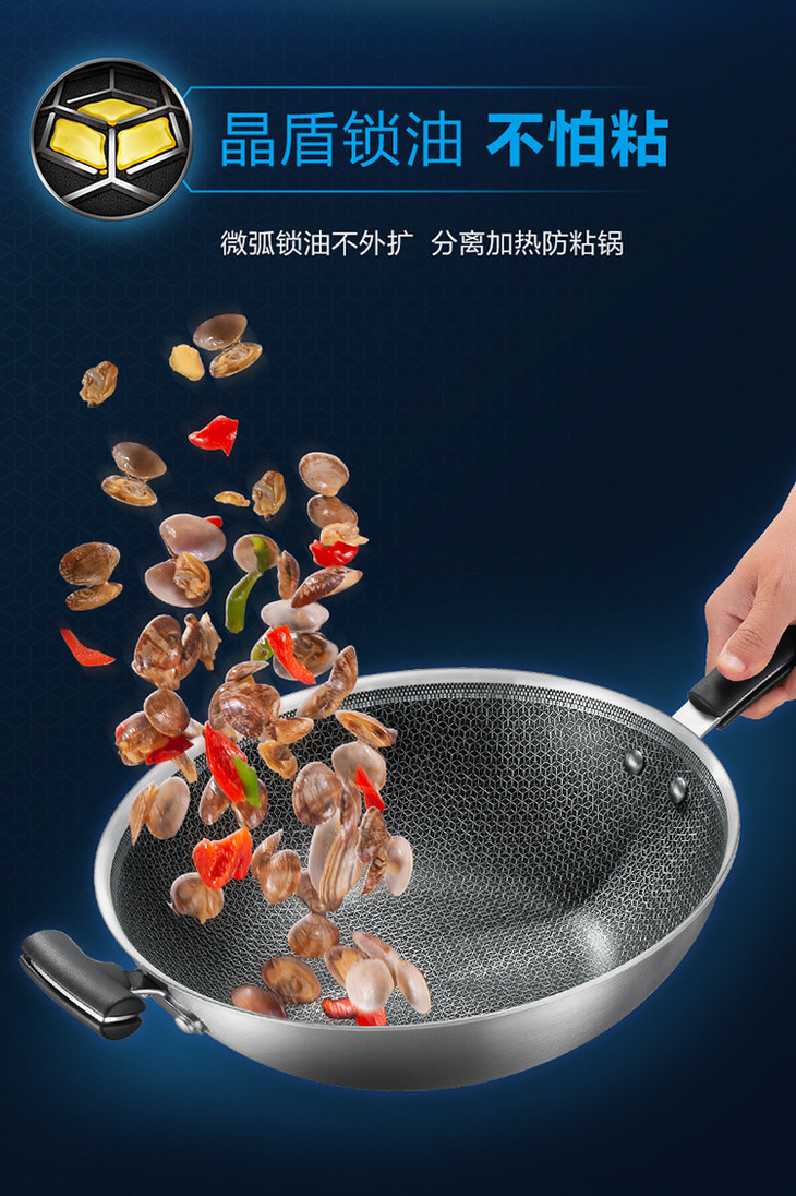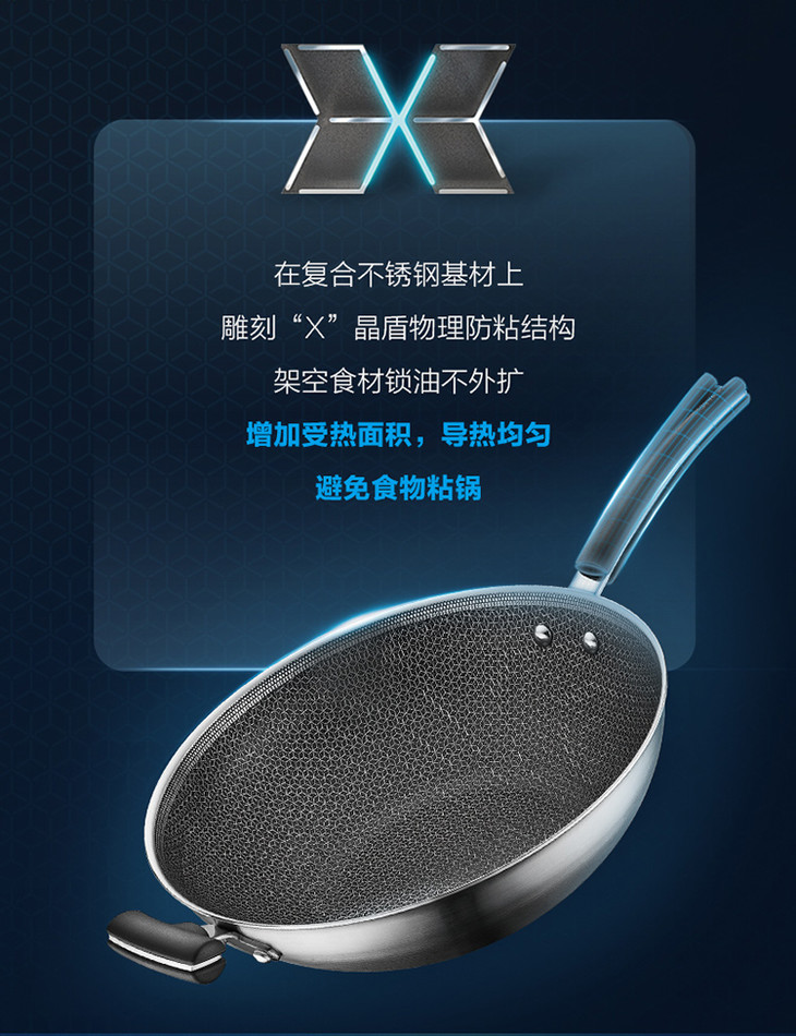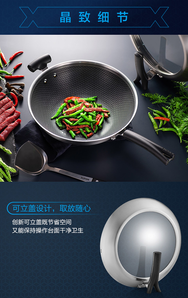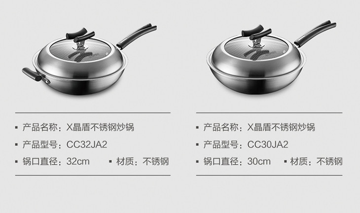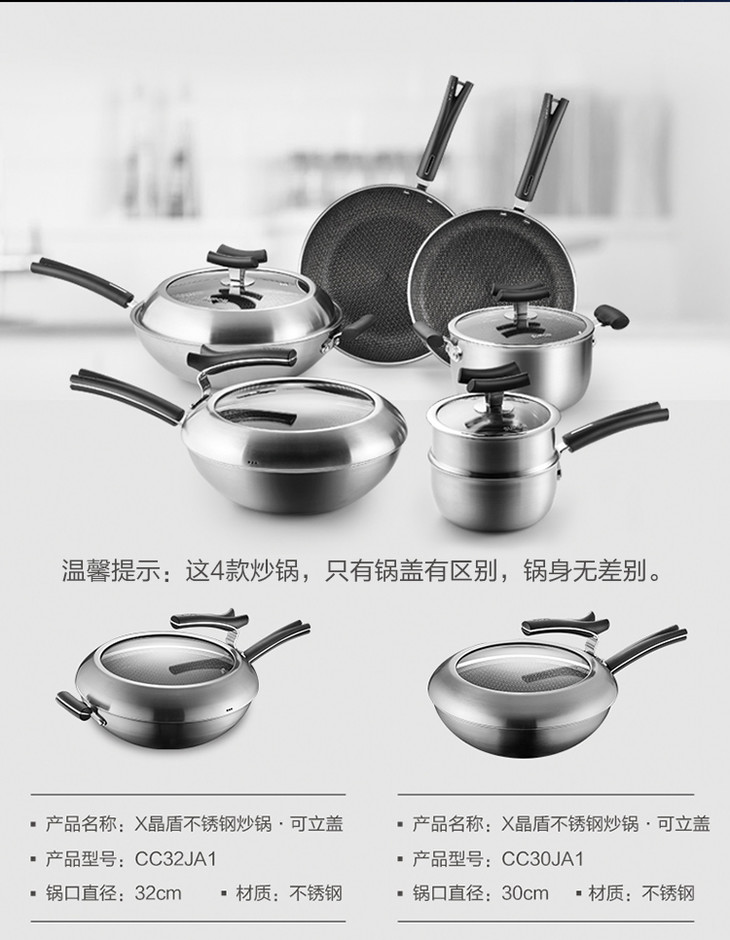 苏泊尔 SUPOR X晶盾CC32JA1 316不锈钢少油烟防粘炒锅32cm可立盖