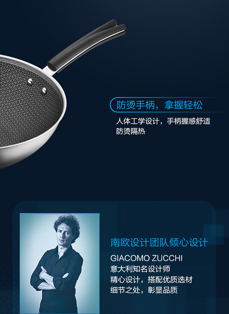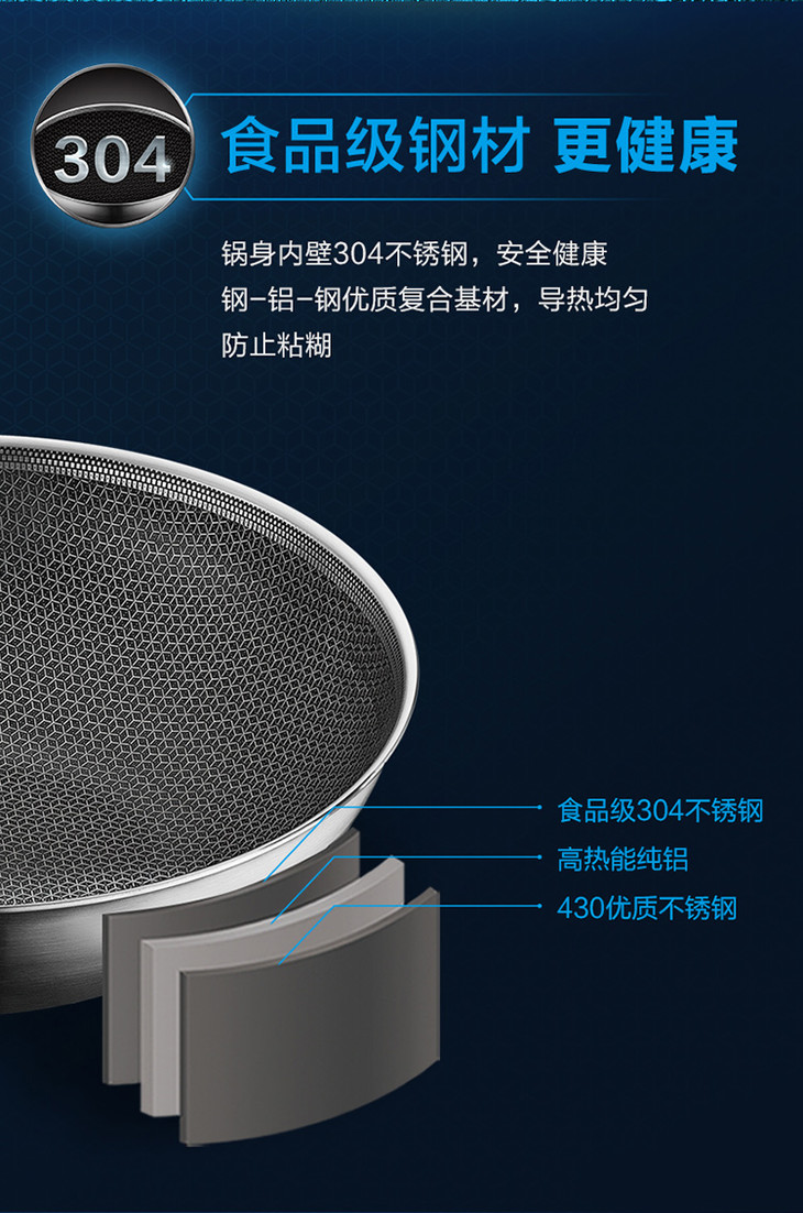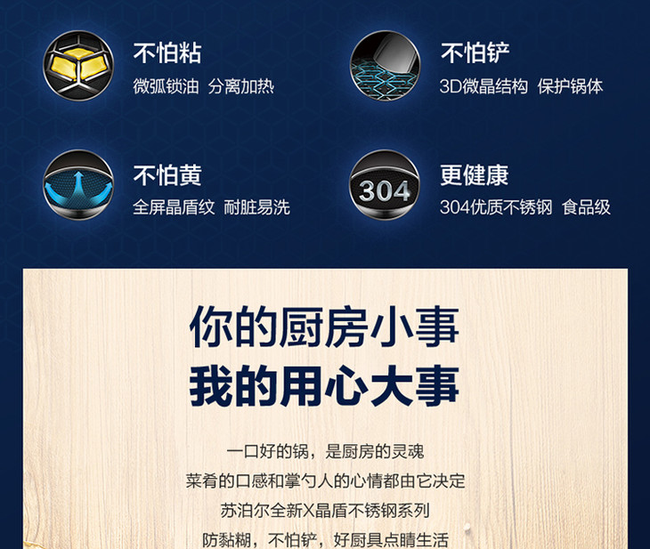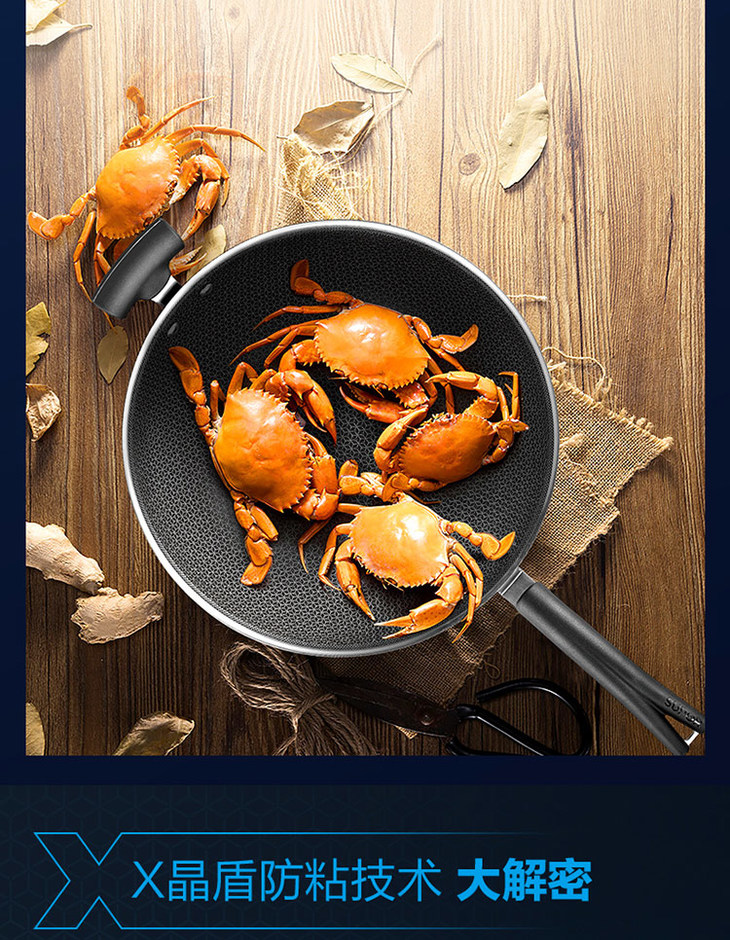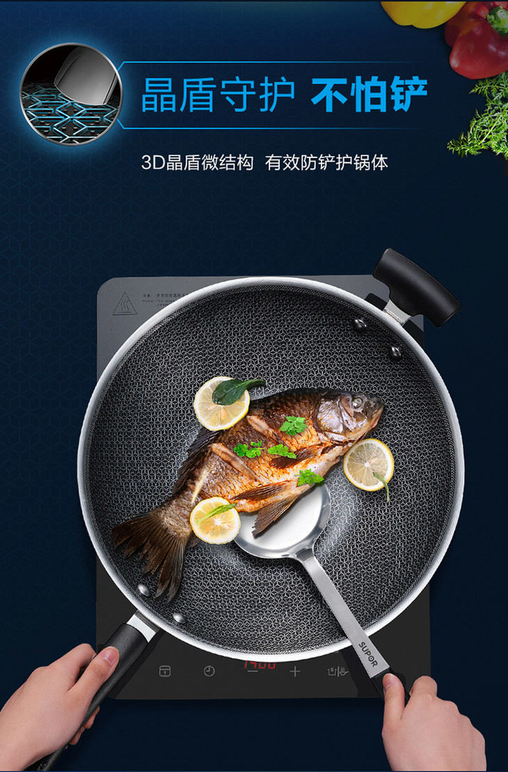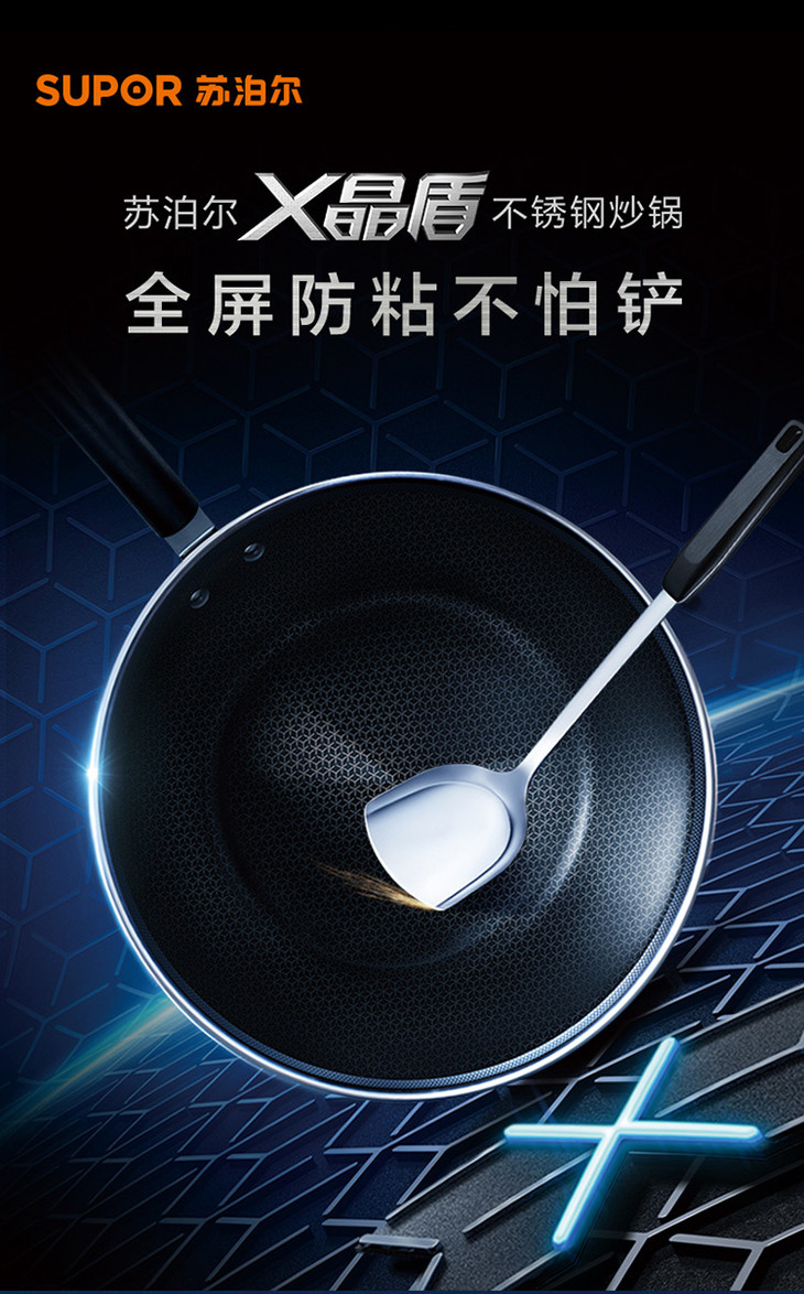 苏泊尔 SUPOR X晶盾CC32JA1 316不锈钢少油烟防粘炒锅32cm可立盖