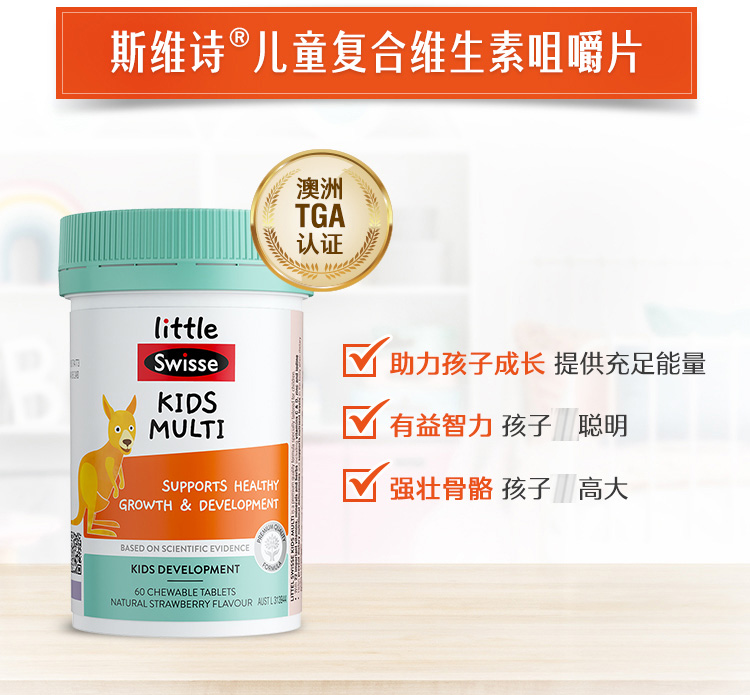 【保税仓】澳洲Swisse儿童复合维生素咀嚼片60粒