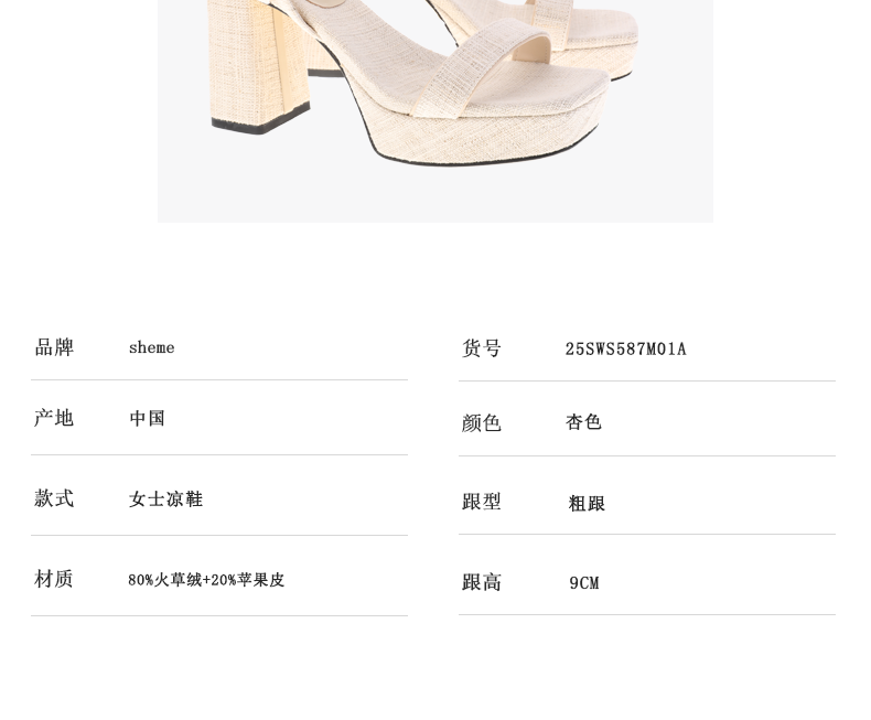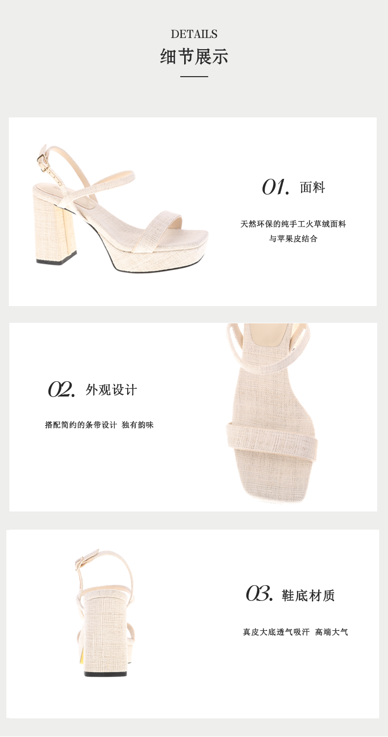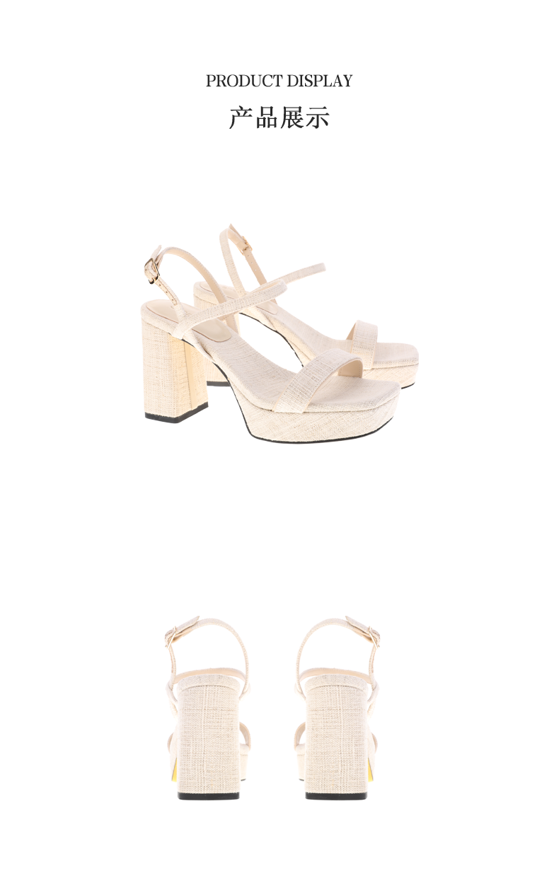 sheme环保火草绒拼接简约条带高跟女士凉鞋搭扣踝带可定制