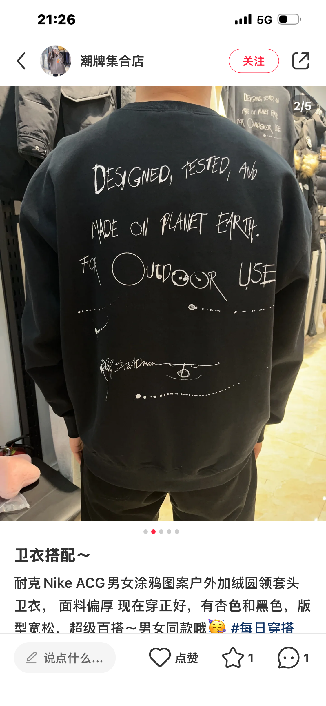 耐克/Nike ACG Therma-FIT 男女加绒保暖套头衫卫衣 FD8761-010 重磅克重圆领卫衣 颜色 黑色 石灰白 尺码mlxlxxl