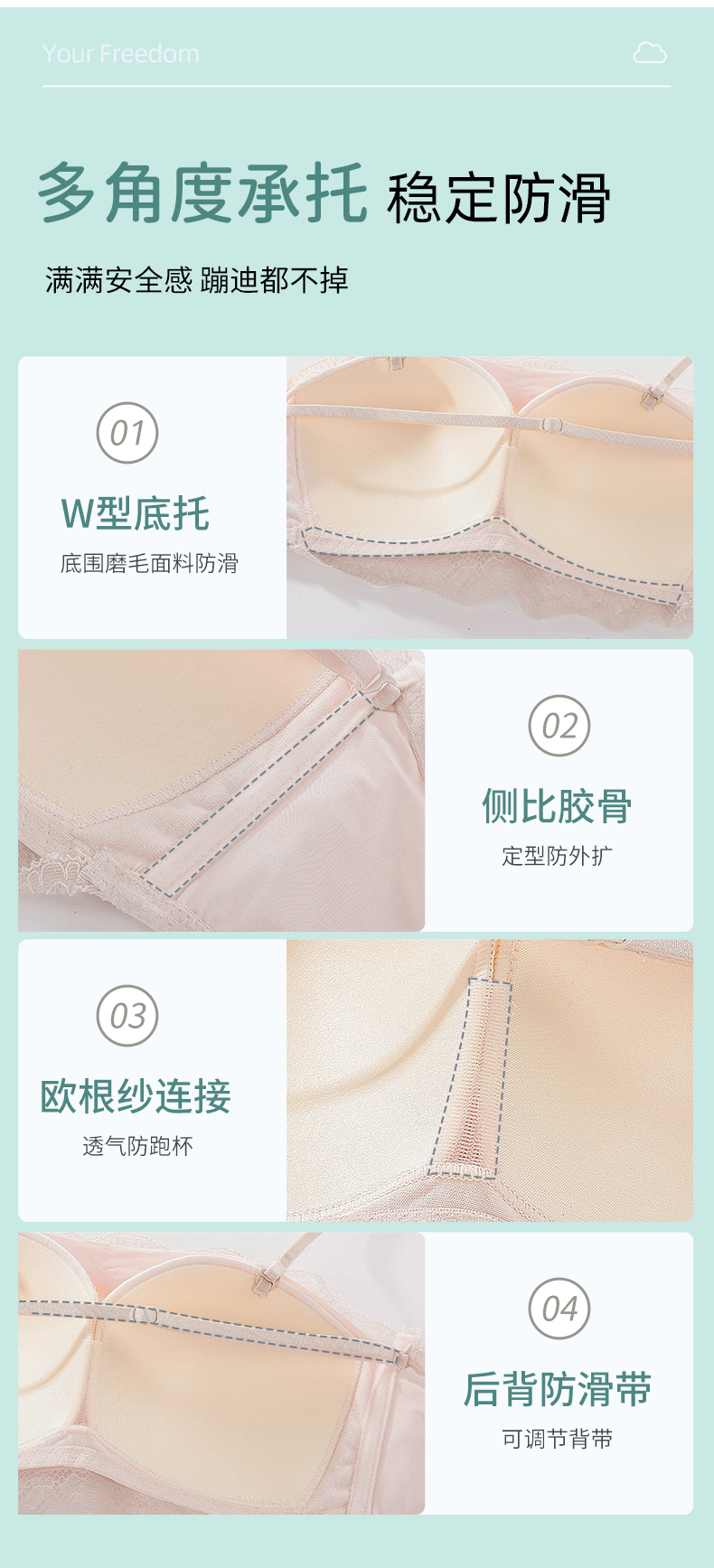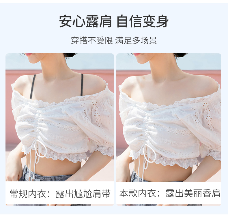 雅黛丽无肩带内衣夏季薄款美背抹胸无钢圈少女风性感防滑聚拢裹胸