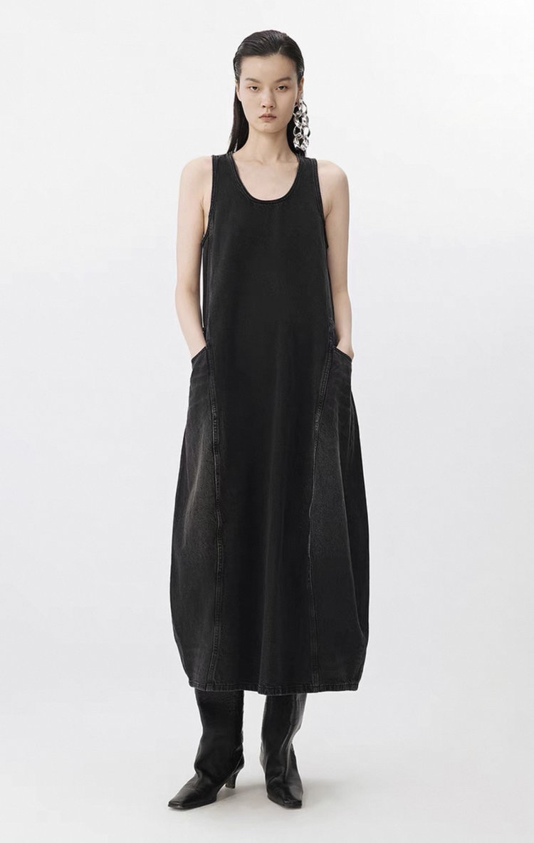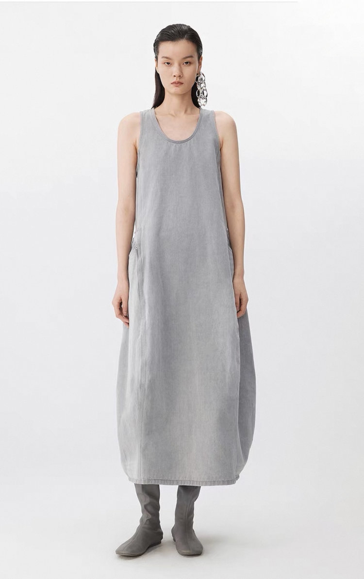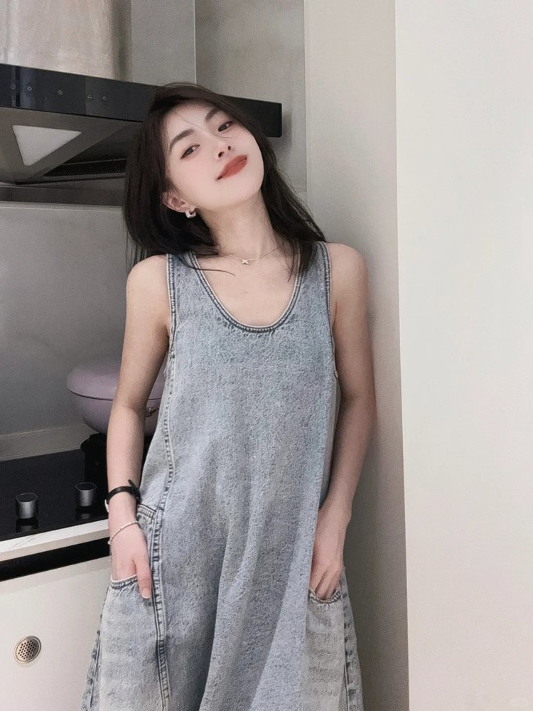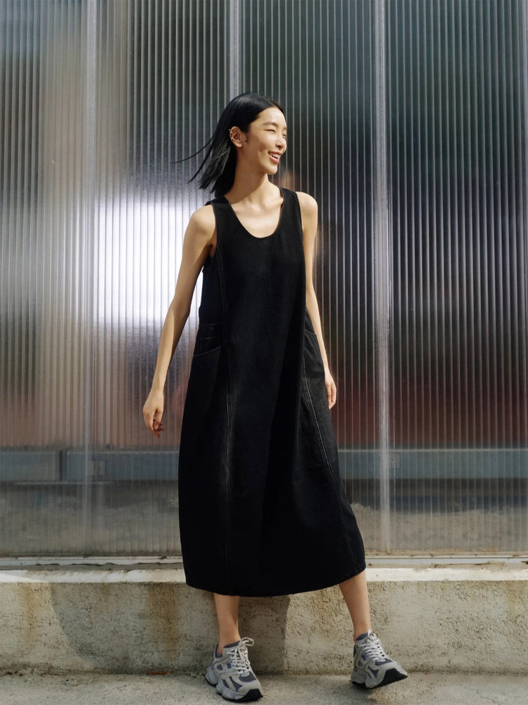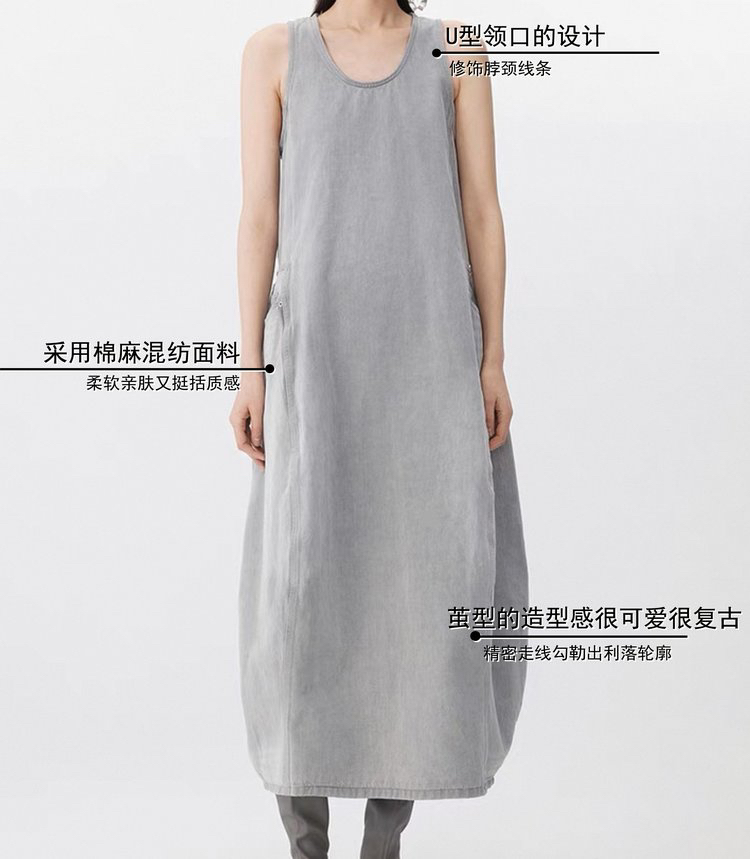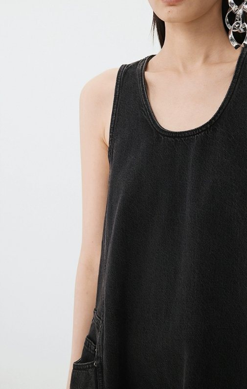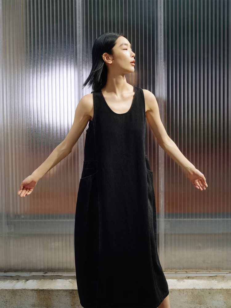 无袖牛仔连衣裙 75%棉+25%汉麻 立体水洗工艺 松弛舒适的穿搭 清爽纯净 长度刚刚好 无袖设计