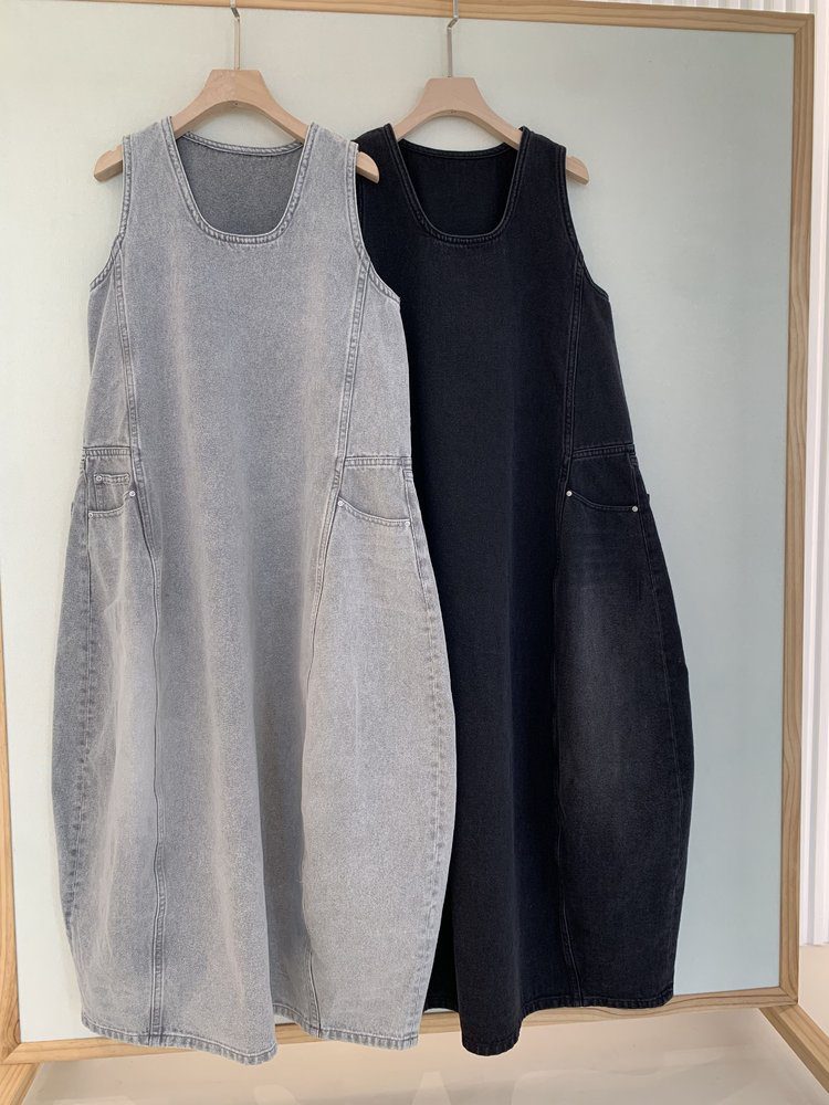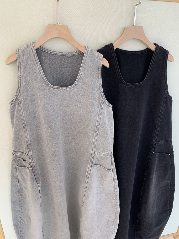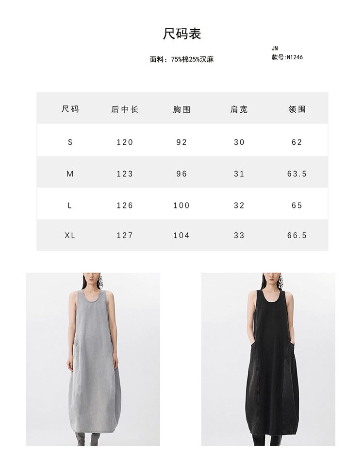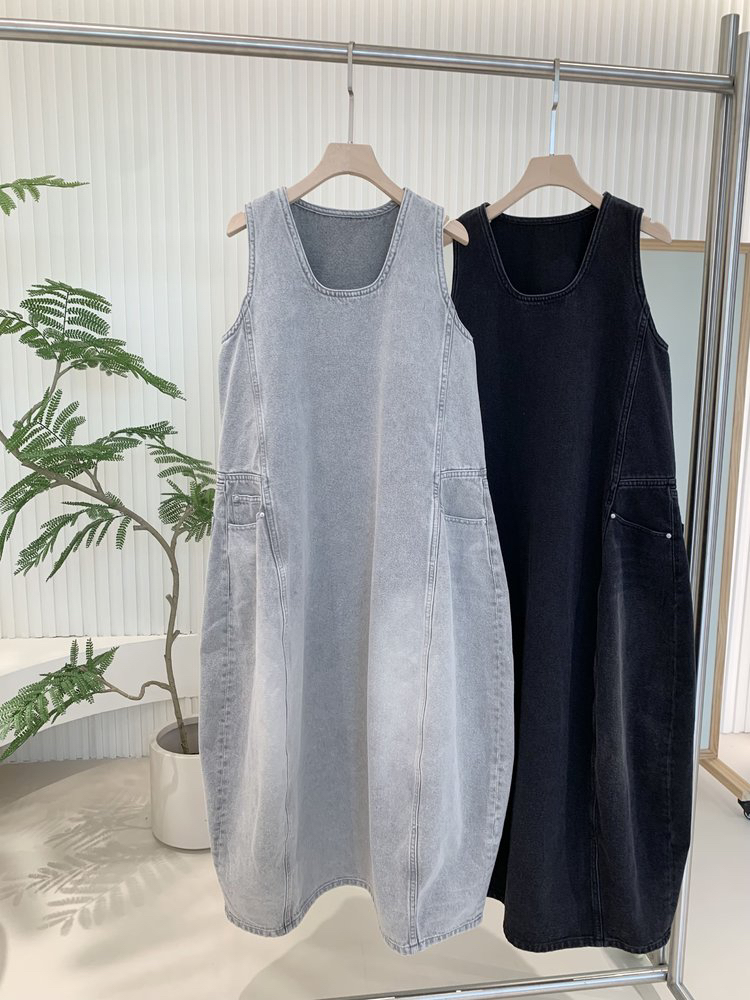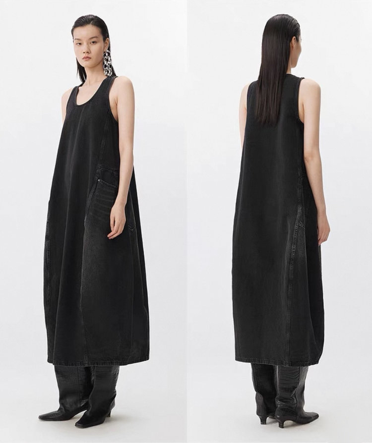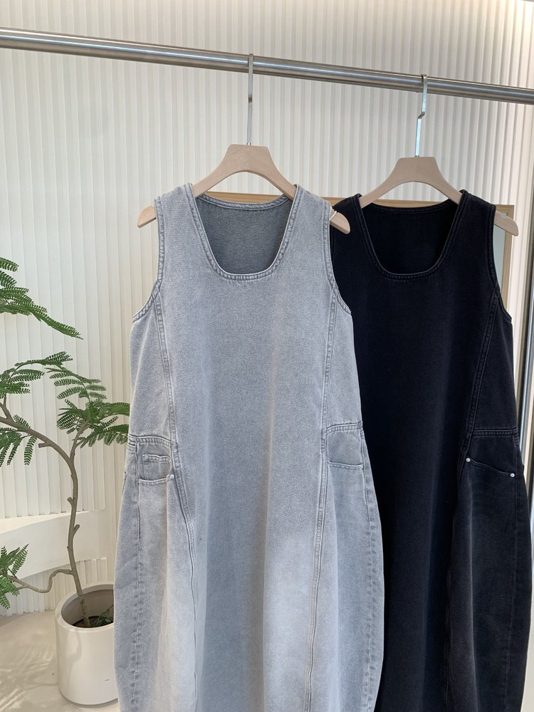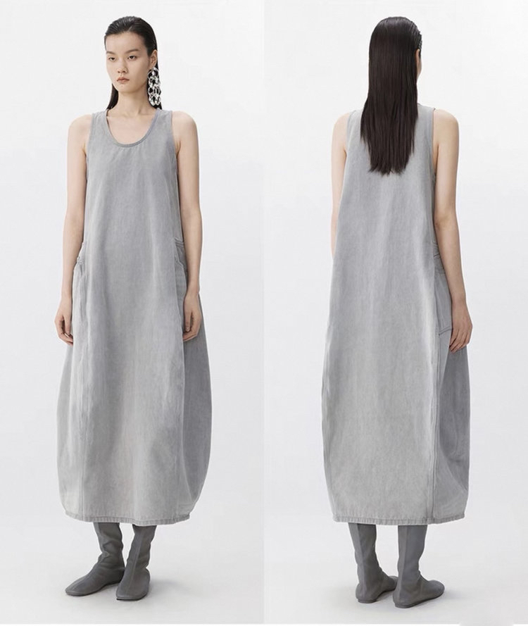 无袖牛仔连衣裙 75%棉+25%汉麻 立体水洗工艺 松弛舒适的穿搭 清爽纯净 长度刚刚好 无袖设计