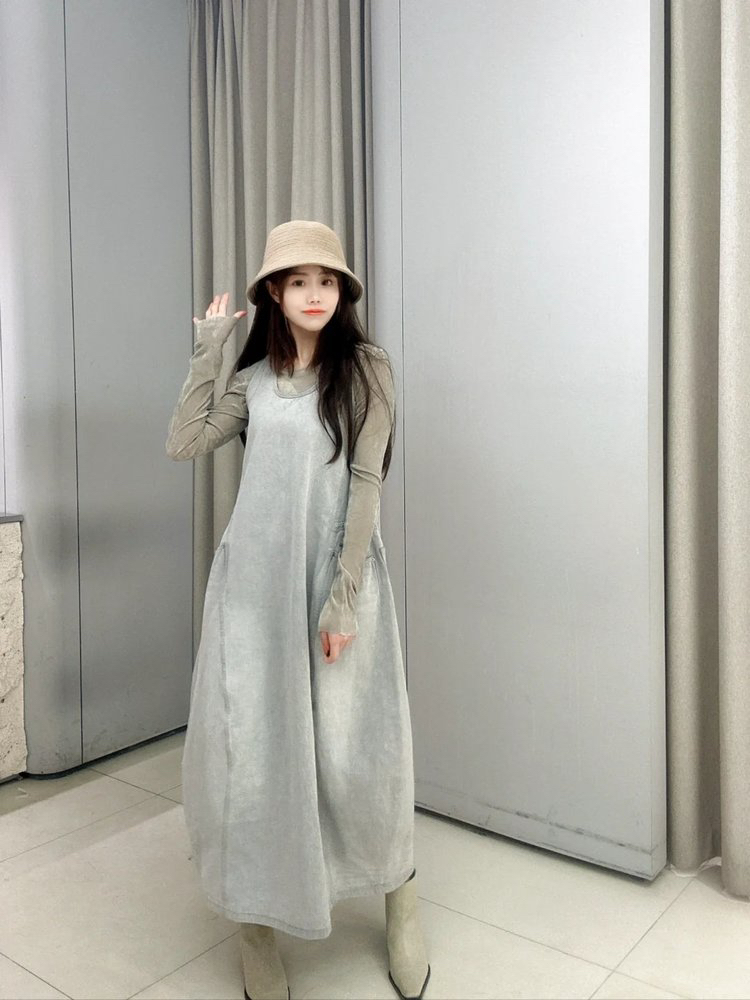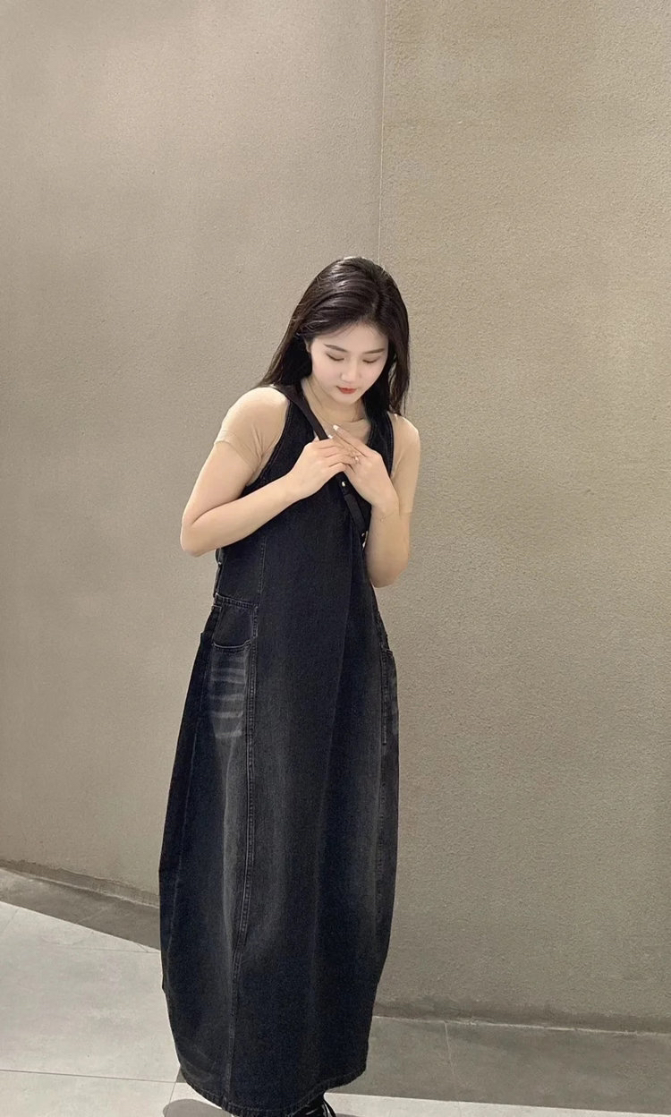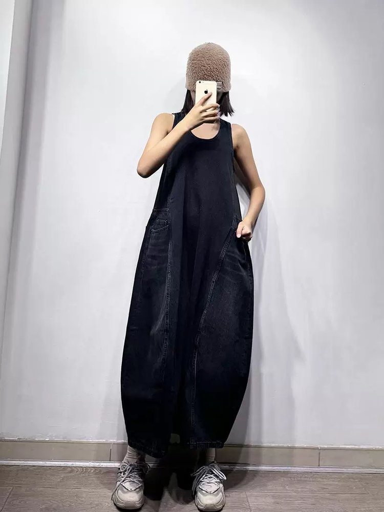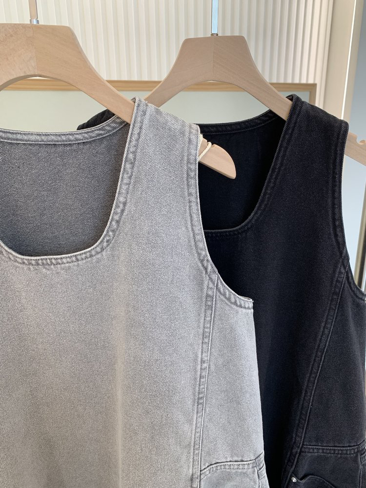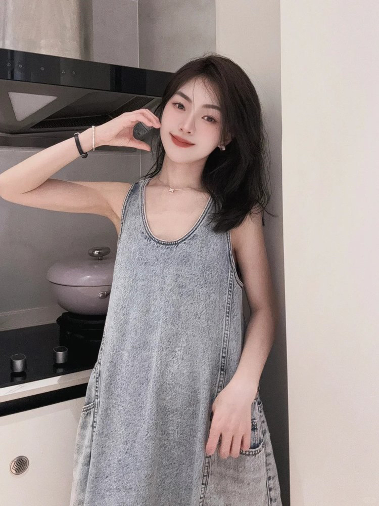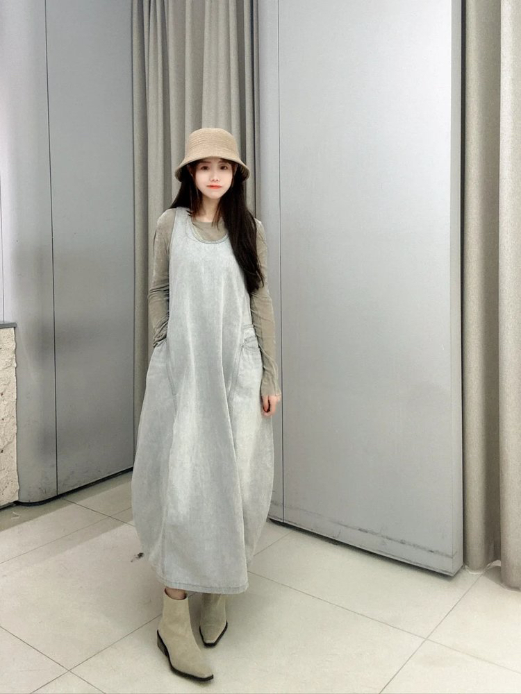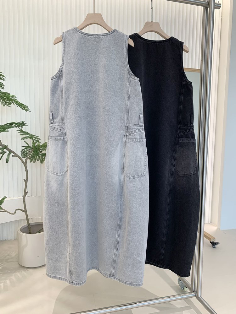 无袖牛仔连衣裙 75%棉+25%汉麻 立体水洗工艺 松弛舒适的穿搭 清爽纯净 长度刚刚好 无袖设计
