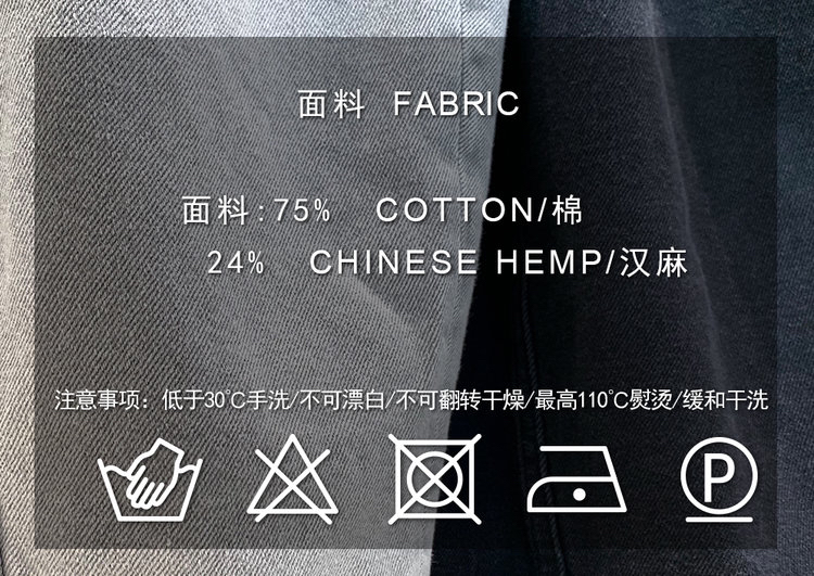 75%的棉25%汉麻,棉麻共生的呼吸美学,既有棉质的柔软亲肤,又承袭汉麻的挺括质感,对皮肤友好,即使是敏感肌肤人群也适合穿着。
