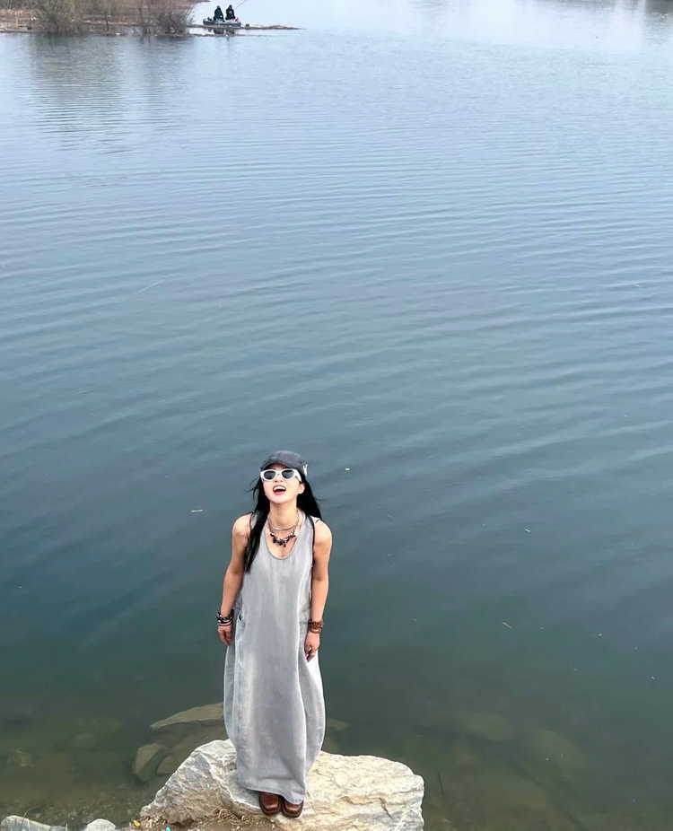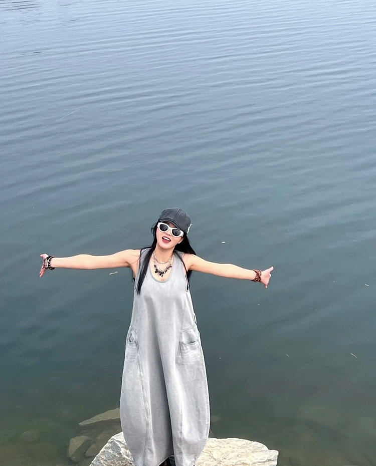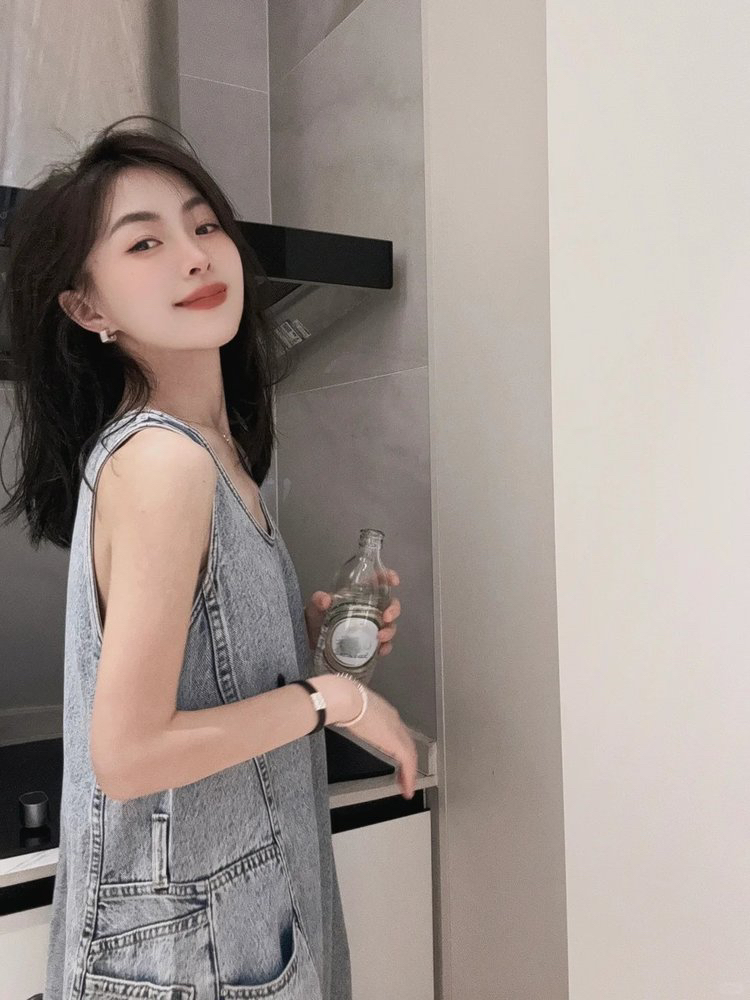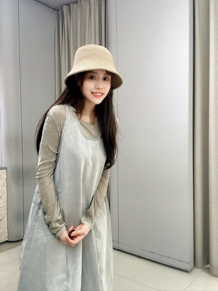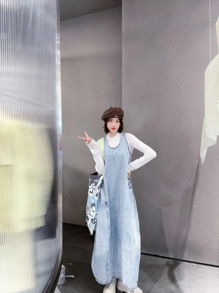穿搭的松弛舒适 说的就是这条牛仔裙,前面U型领口的设计一绝 很修饰脖颈线条噢,下摆廓形有种不经意间、不动声色的设计感。