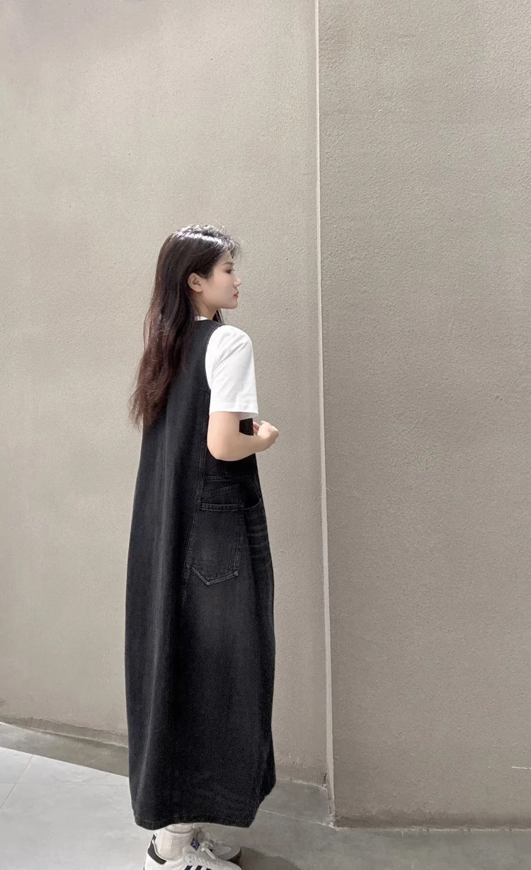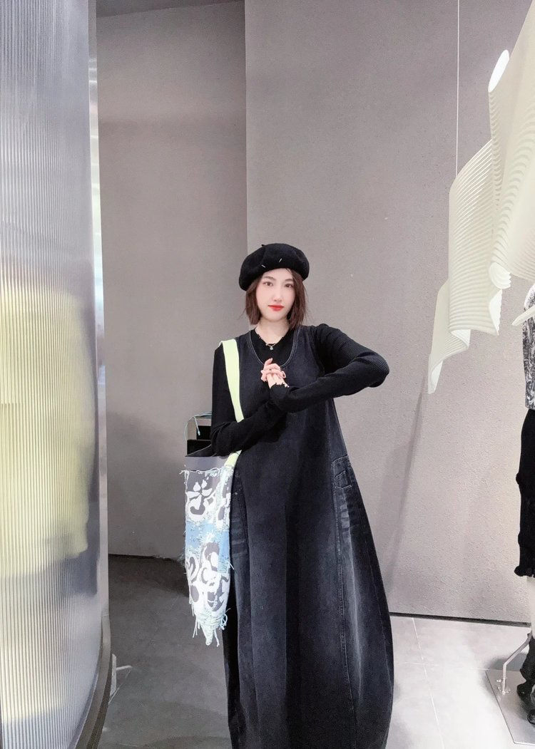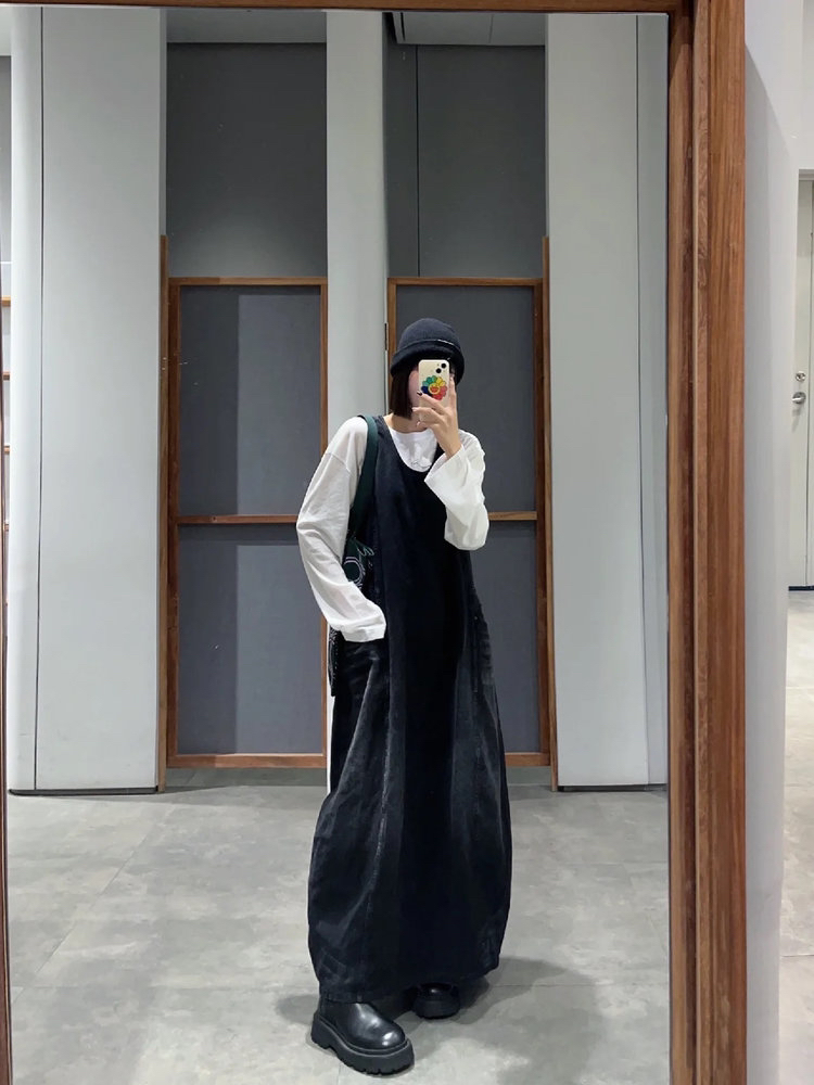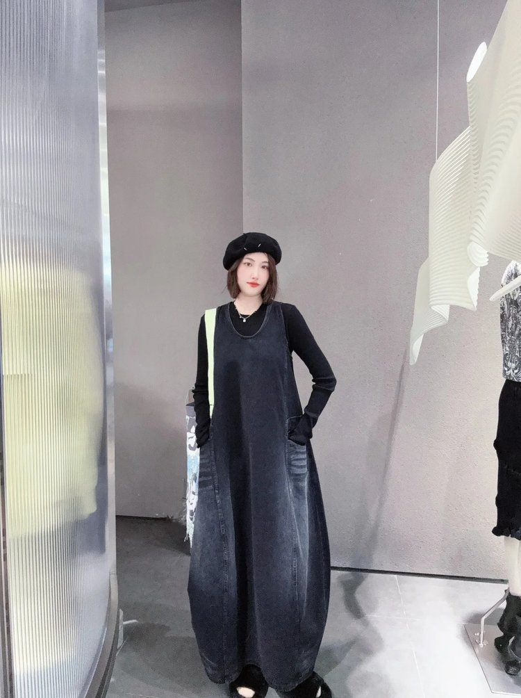 牛仔黑色甜酷风拉满,超长款很有feel~长到小脚踝那个位置。