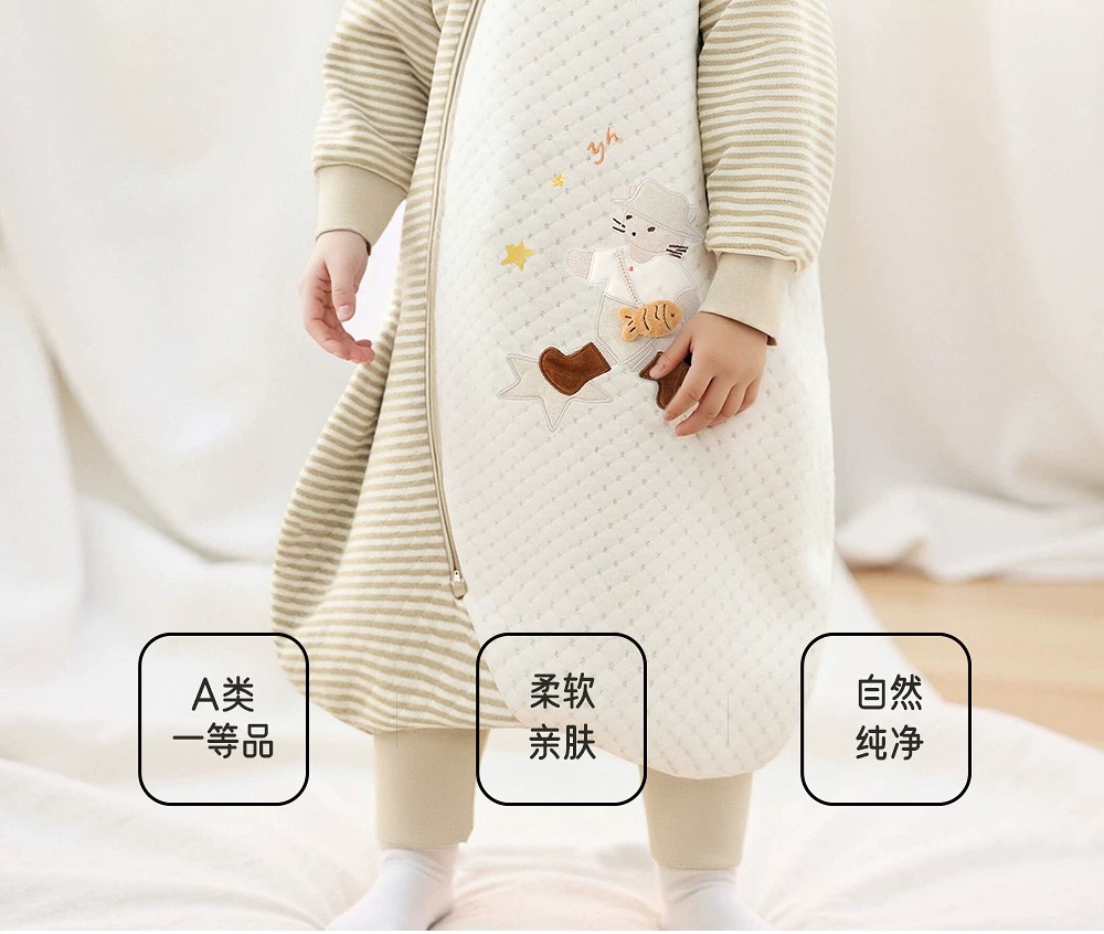 【春上新】8楼英氏YeeHoO 英氏婴儿连体睡袋四季长袖保暖男女宝睡觉防踢被分腿睡袋吊牌价598折后价526
