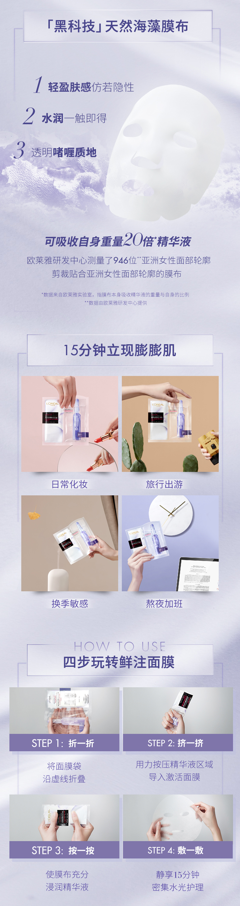 现货▲欧莱雅安瓶面膜/玻色因面膜/黑精华面膜 5片