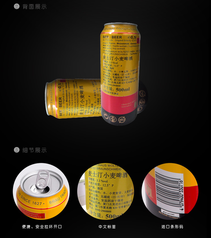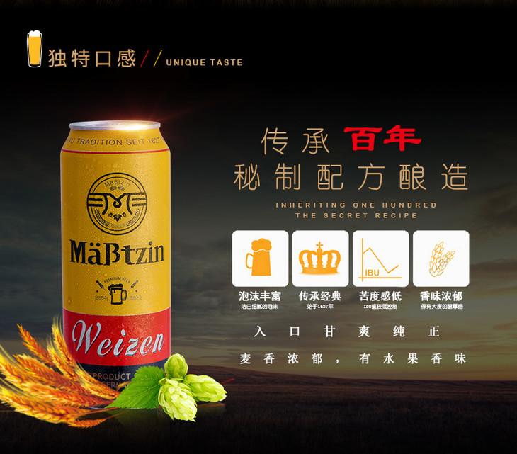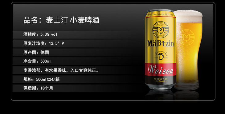 德国麦士汀小麦啤酒 5.3%Vol 500ml*24瓶