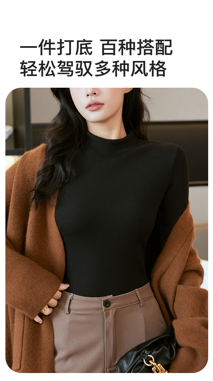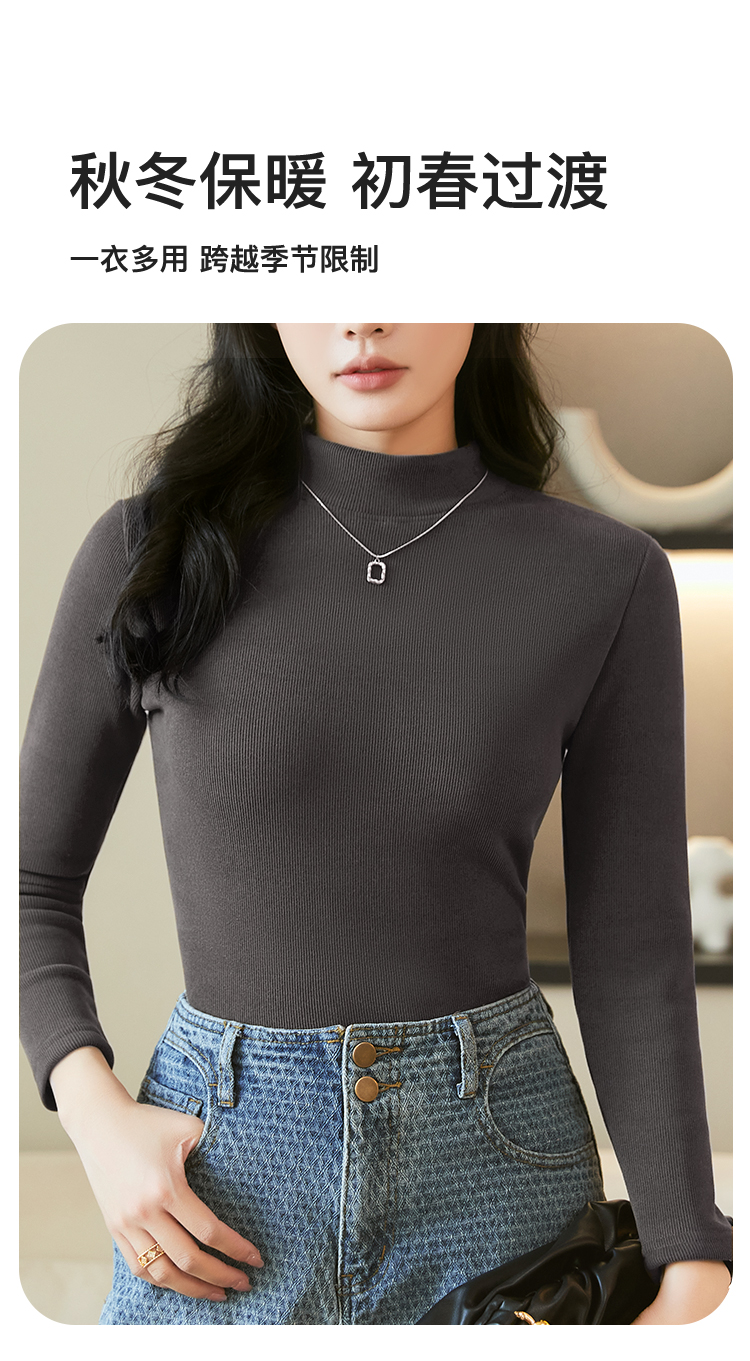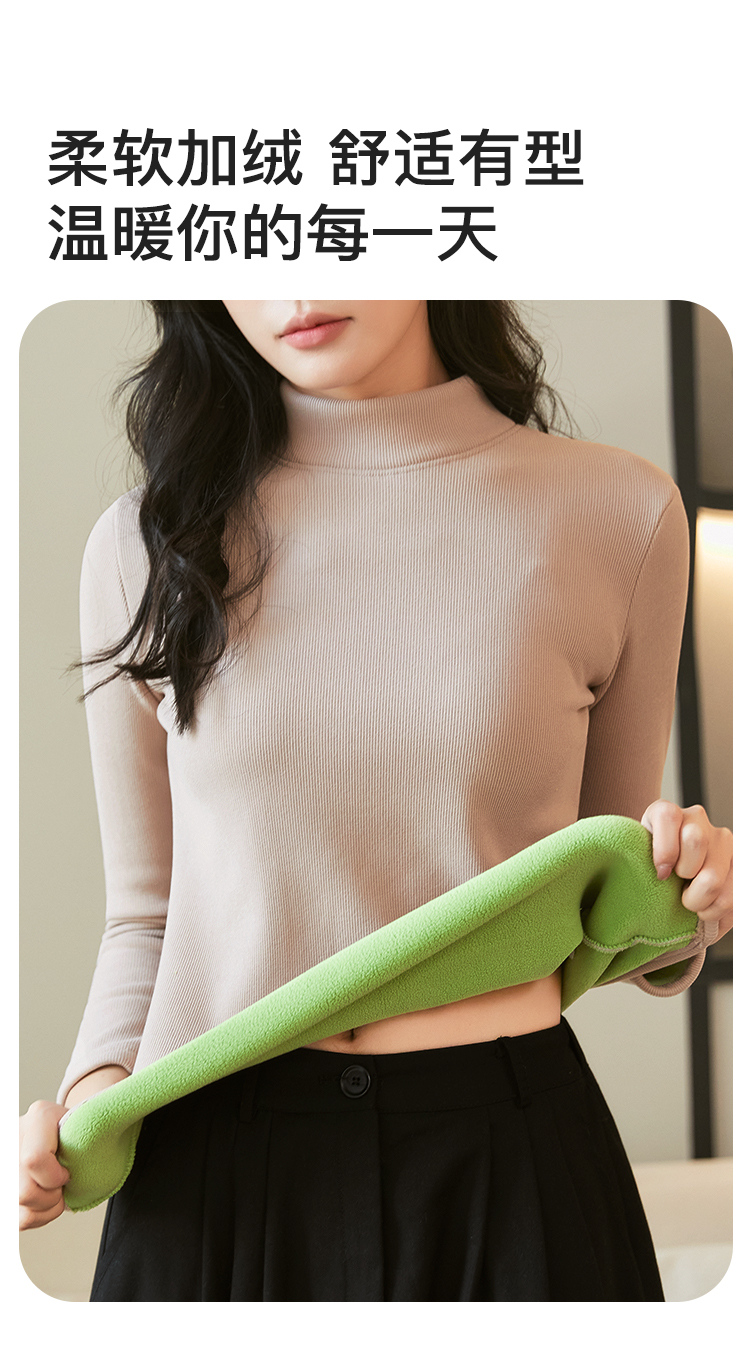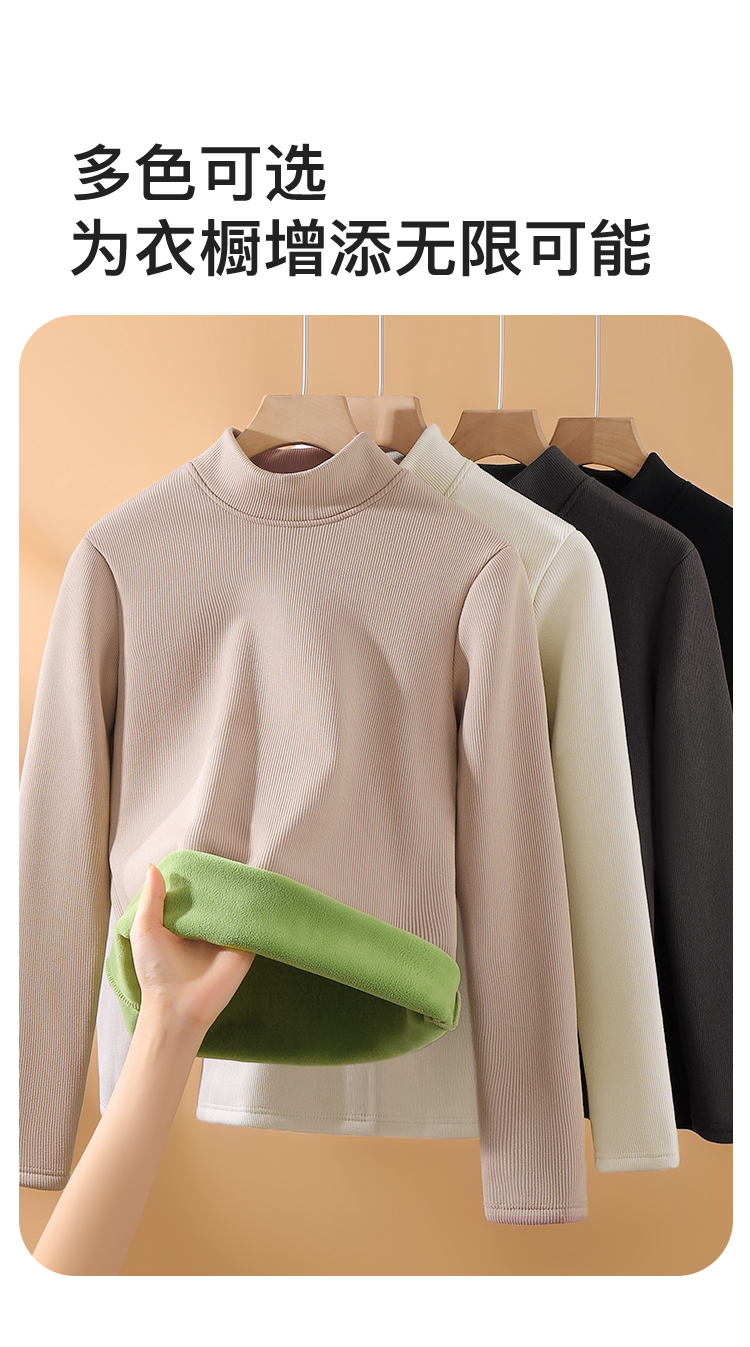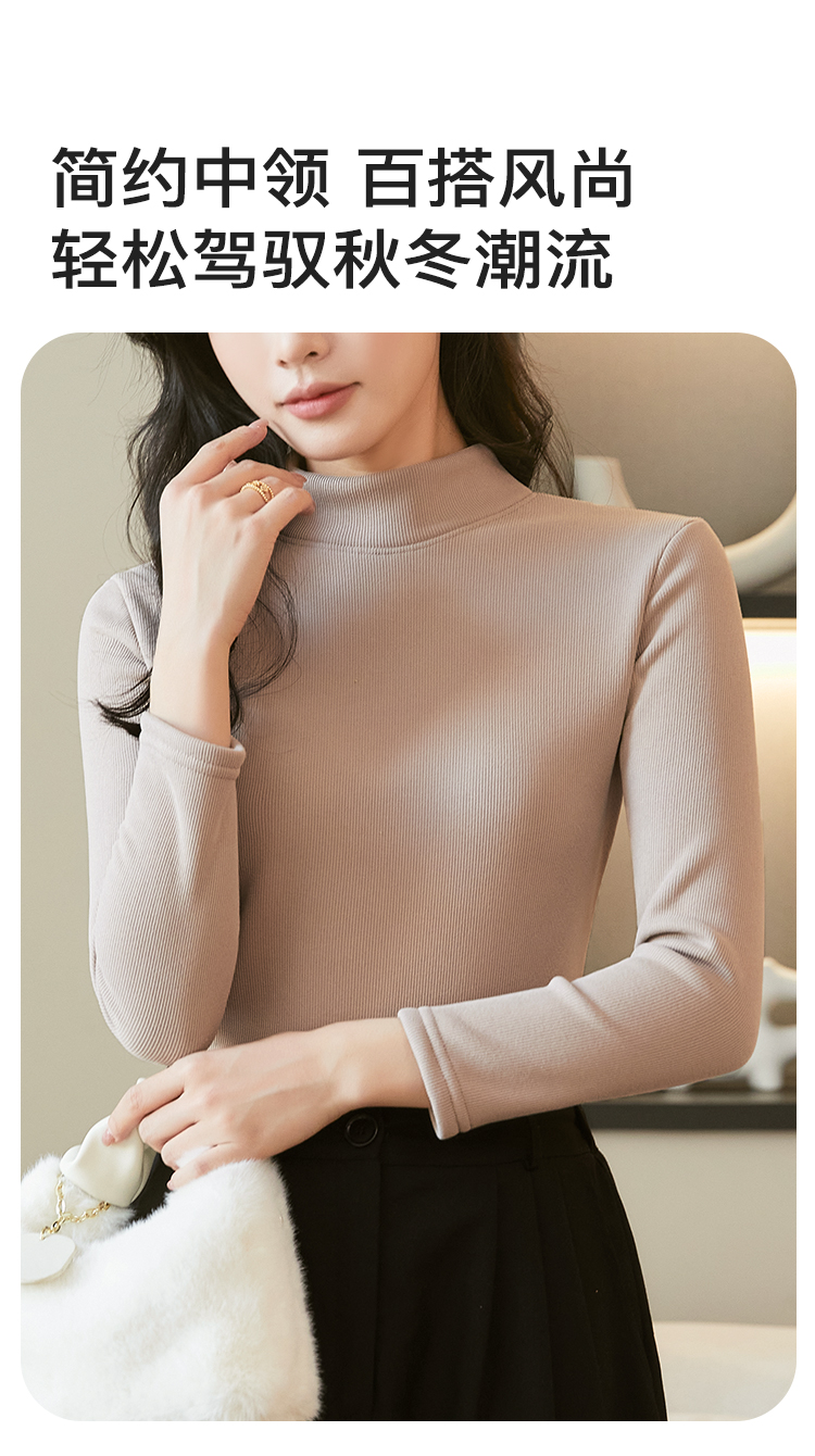 洋气内搭【加绒加厚】秋冬中领打底衫女士保暖上衣时尚修身显瘦2392条纹加绒打底衫