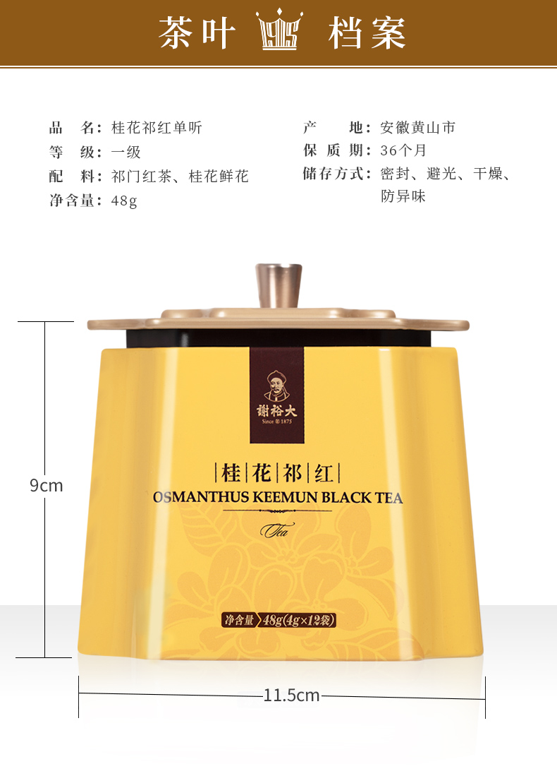 【轻享系列】谢裕大祁门红茶工夫红茶桂花祁红单听48g