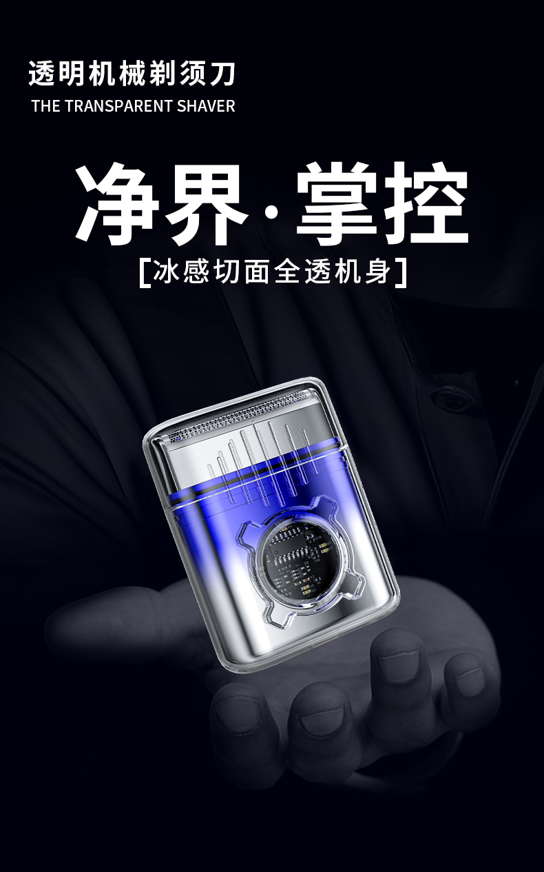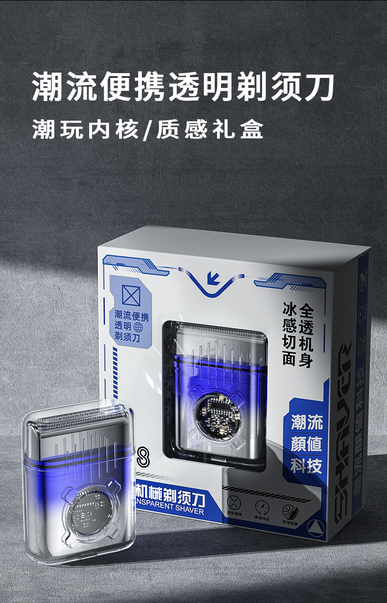新款T8透明机械剃须刀 往复式马达 潮流颜值科技 迷你电动男士旅行便携刮胡刀胡须刀