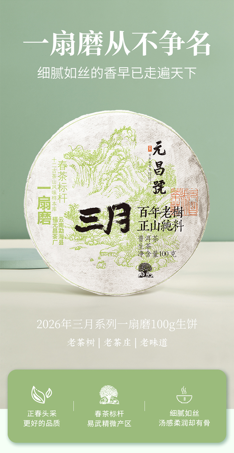 【元昌号】2026年三月系列头春大树一扇磨100g生饼