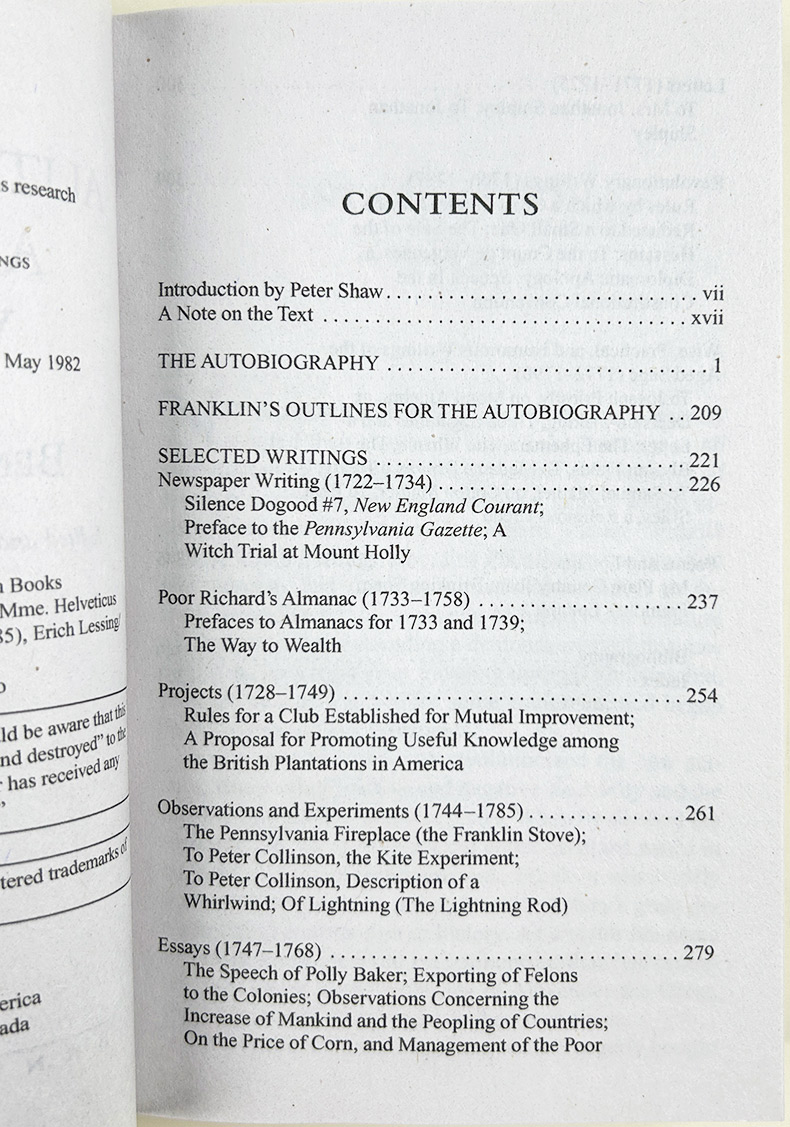 华研原版书 Benjamin Franklin 富兰克林自传及作品集 英文版 本杰明