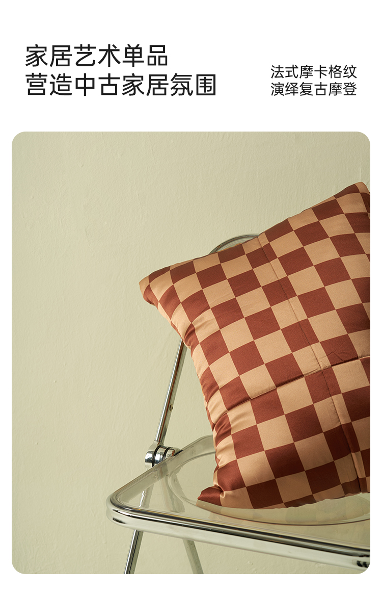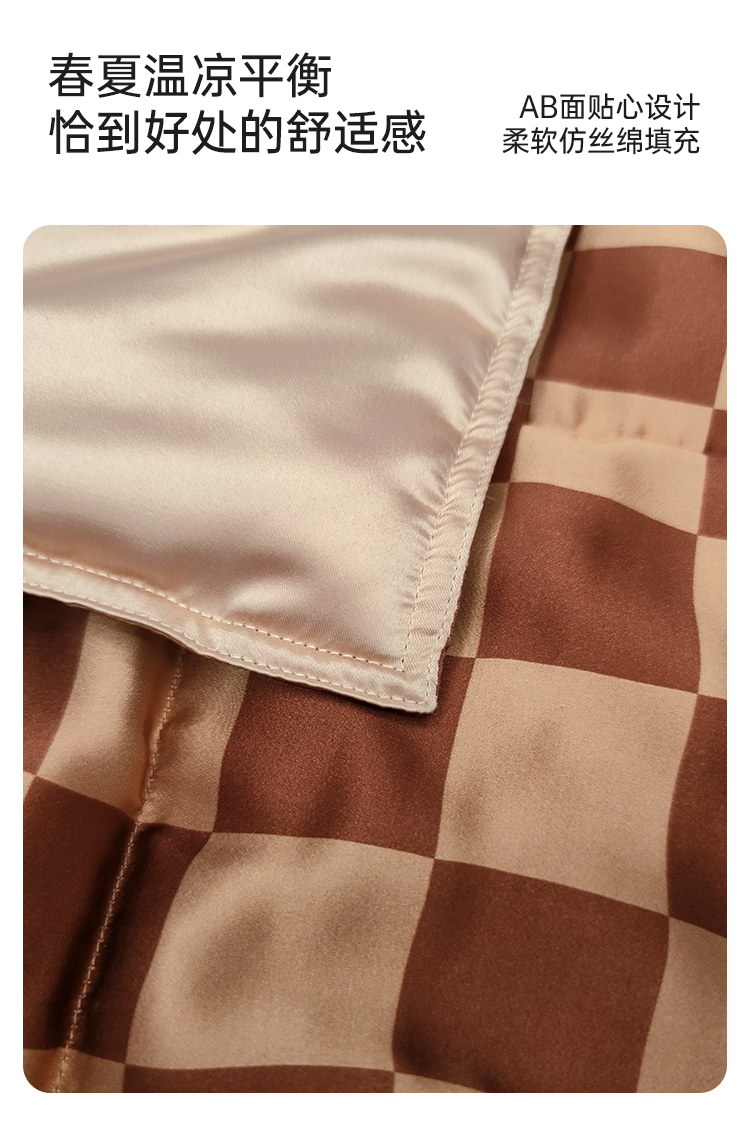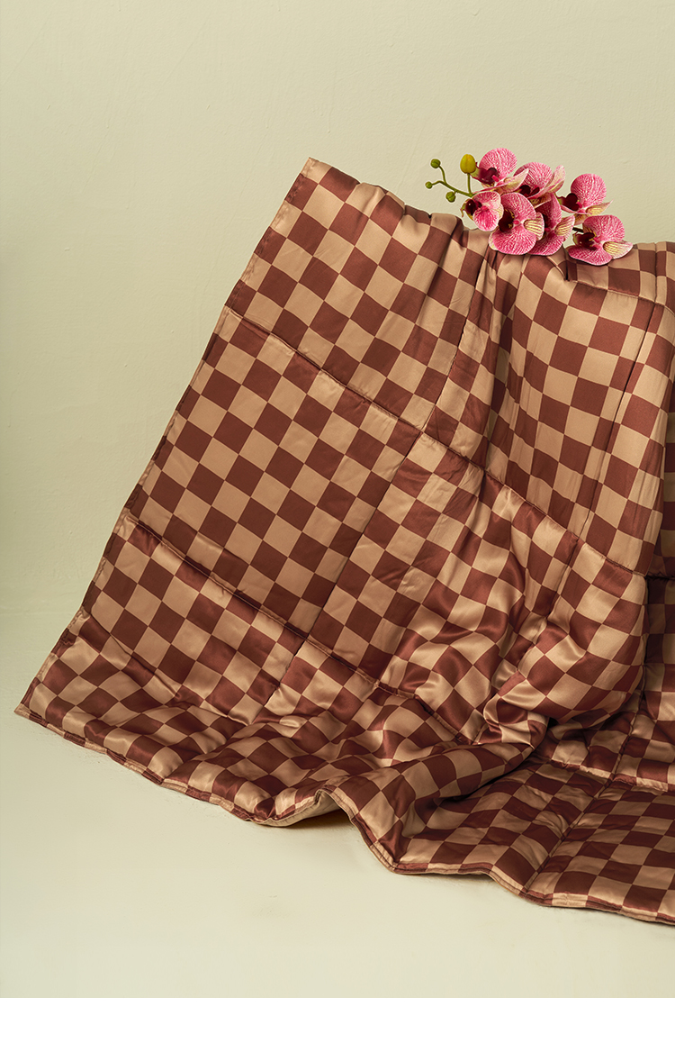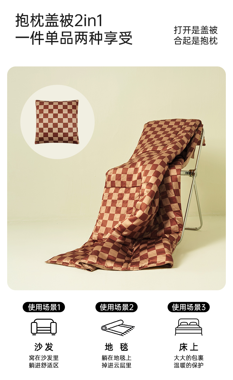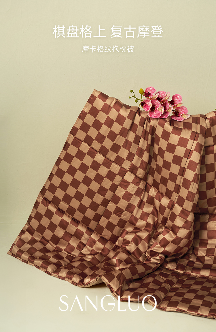 居家必备』桑罗摩卡棋盘印花格纹抱枕被纯净桑蚕丝柔软舒适