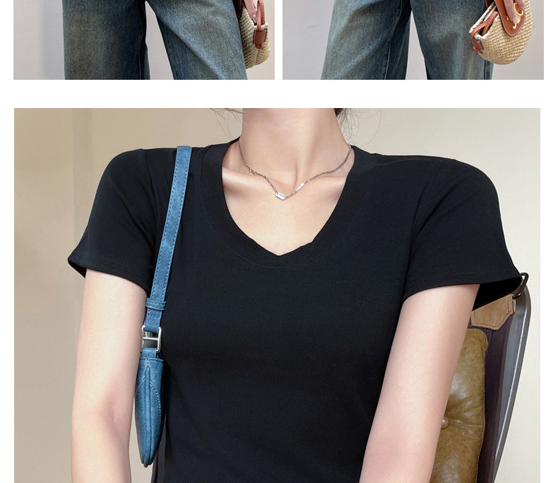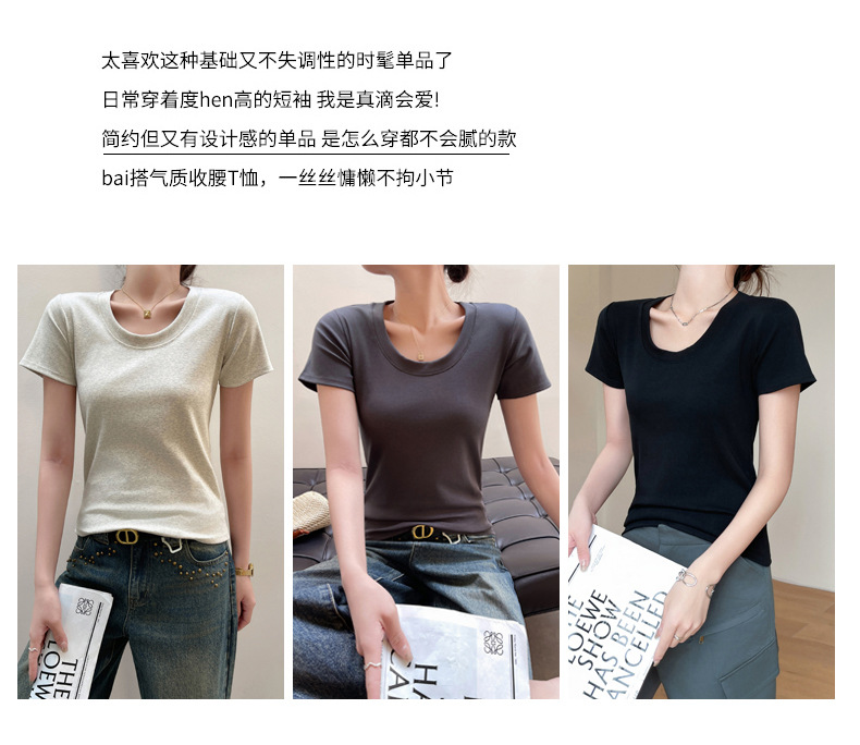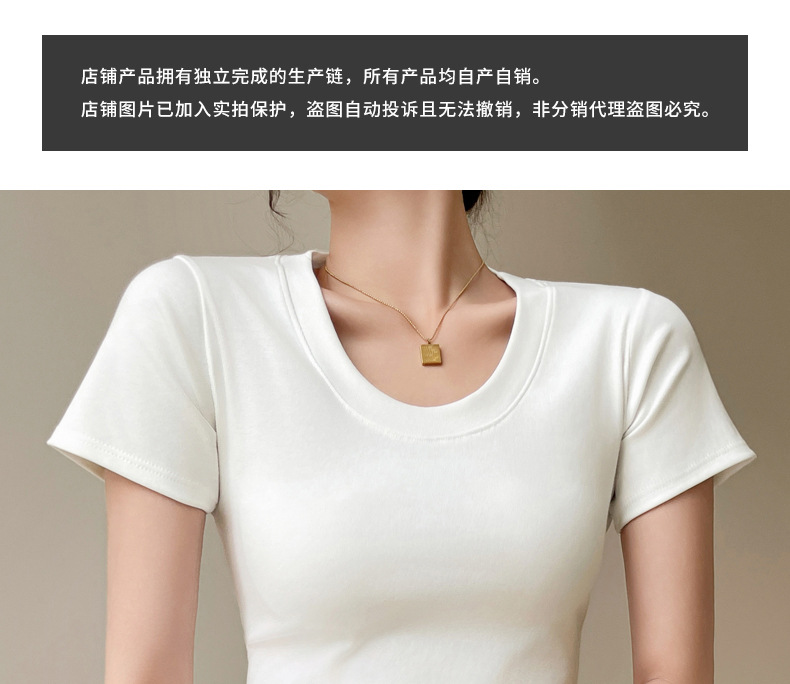 经典款纯棉圆领正肩短袖t恤女士2024新款T春夏季可外穿修身打底衫