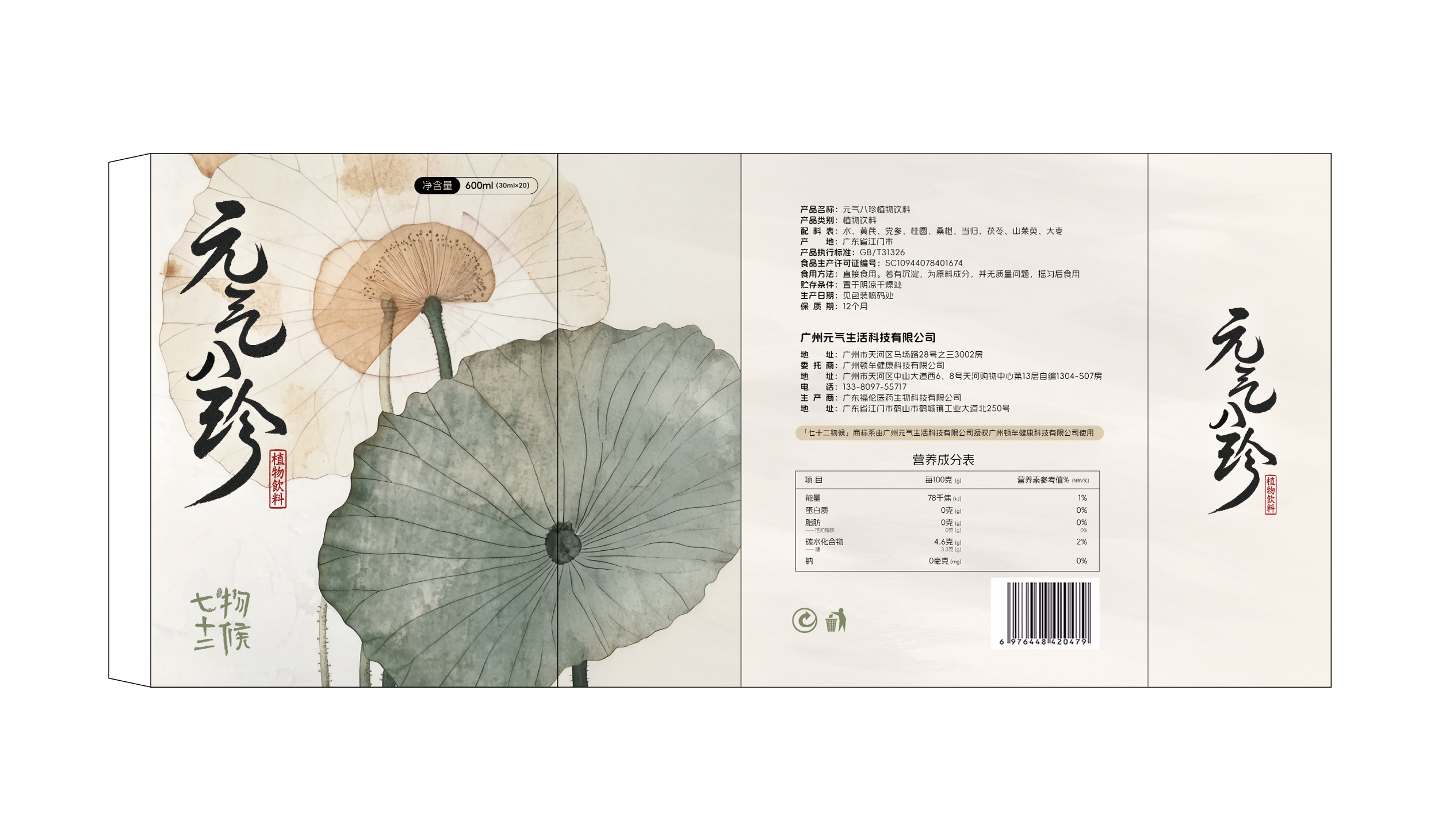 【元气八珍植物饮料丨30ml×20包/盒】