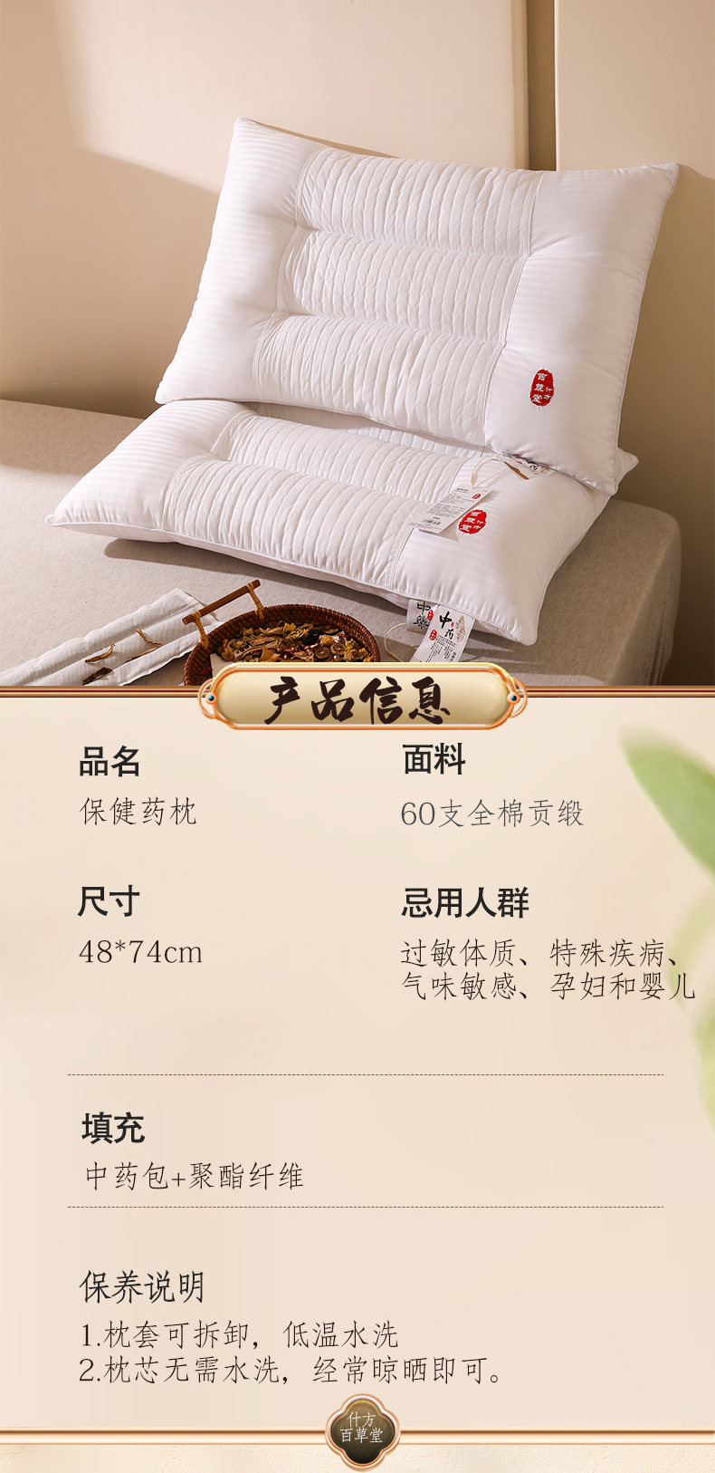 【品名】【什方百草堂】草本保健药枕 柔软舒适 1只装/2只装 【规格】1只装 2只装 【尺码】48*74cm 【产地】国内 【材质】 面 料:60支全棉贡缎 填 充 物:中药包+聚酯纤维 【发货包装】独立包装 【发货地】江苏南通 【发货快递】申通 【不发货区域】新疆,西藏,港澳台 【补邮费地区】宁夏、内蒙、甘肃、海南+5元 【发货时效】48-72小时,周末节假日顺延 |