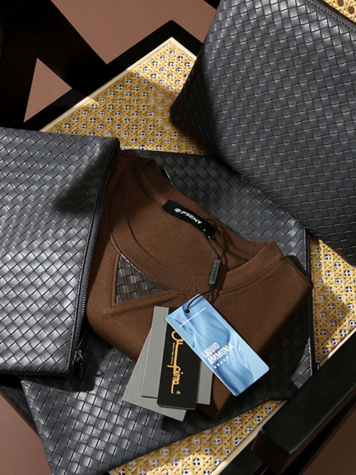 包装是一个皮质的手工编织袋,