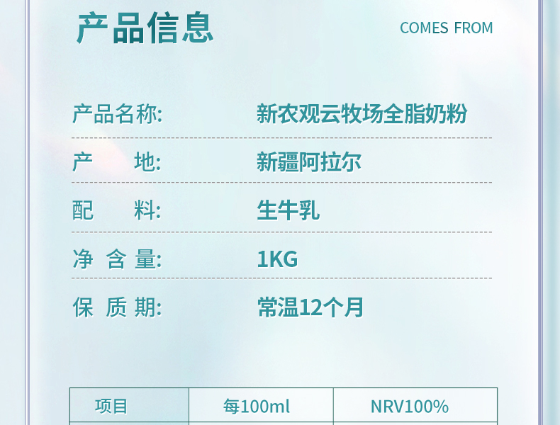 新农观云牧场有机奶粉800g/罐成人学生中老年奶粉359兵团牧场高钙奶粉