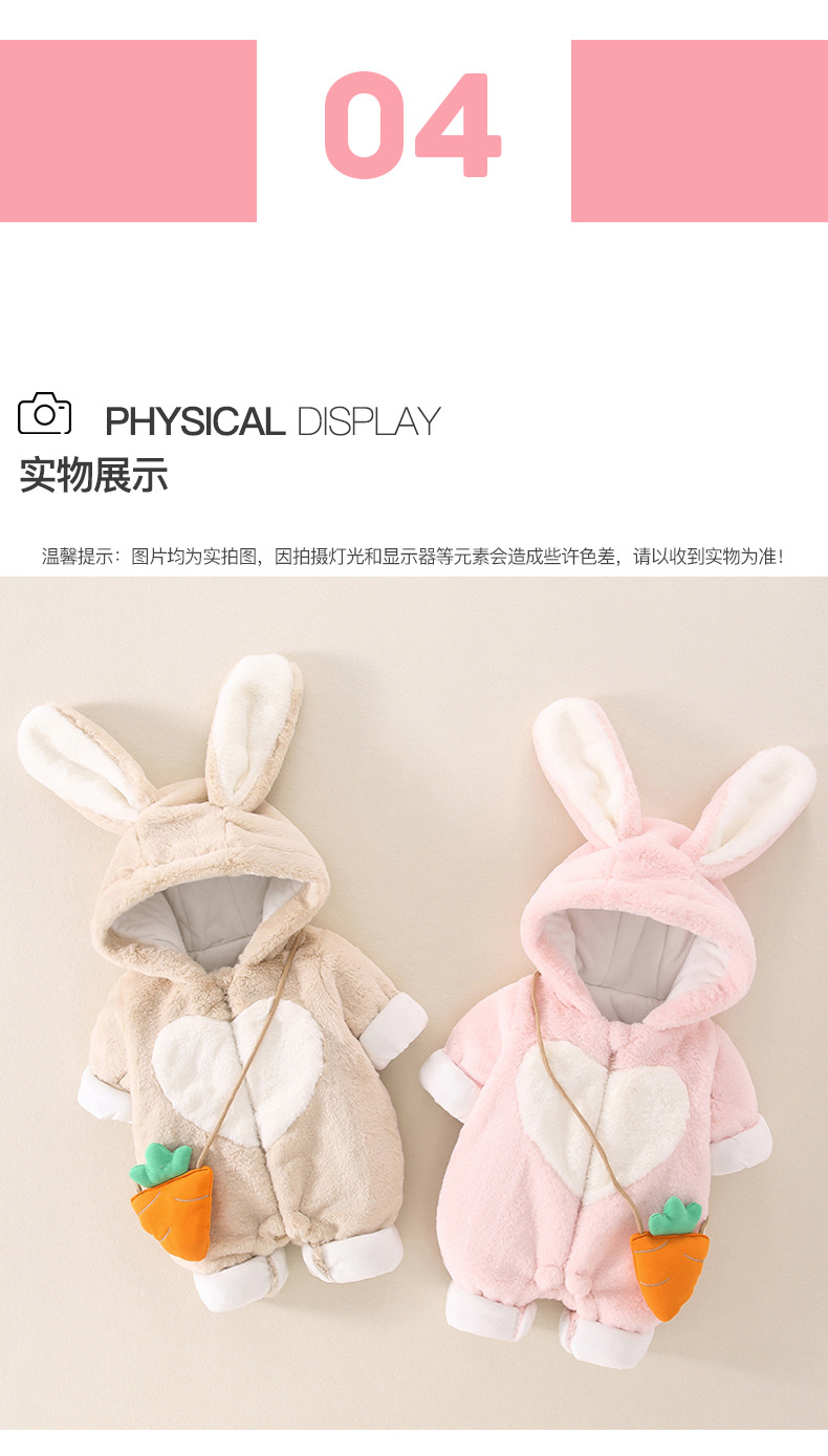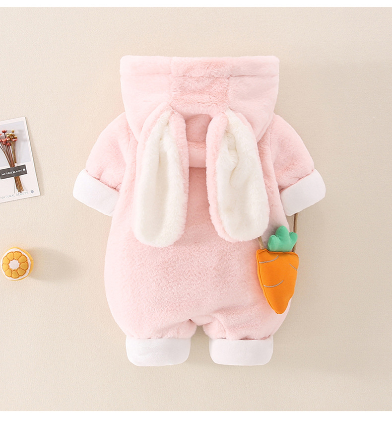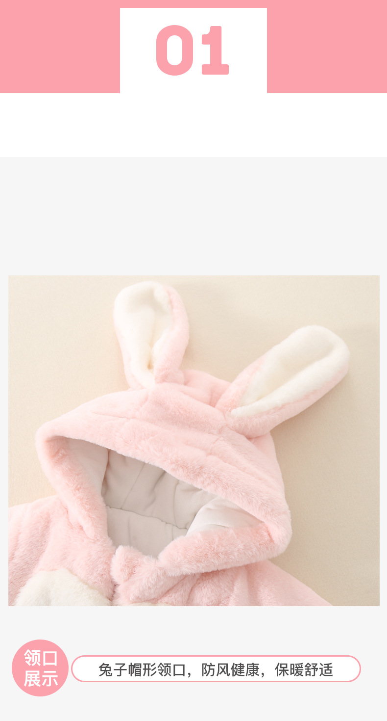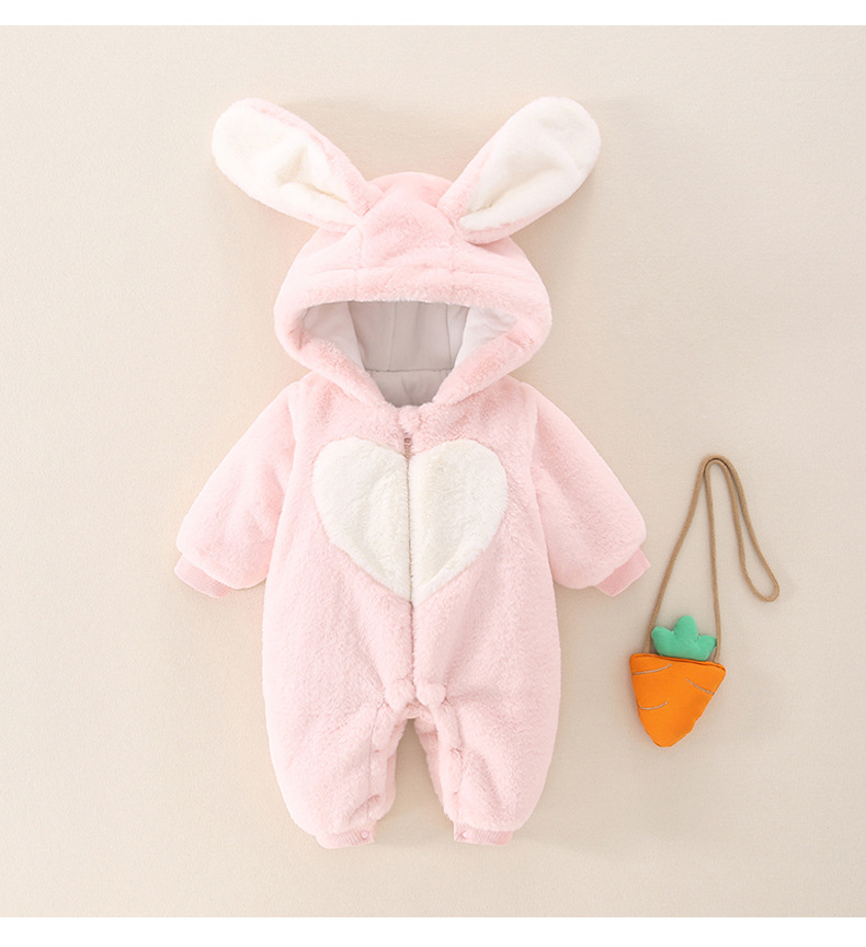婴儿秋冬装衣服带帽加厚女宝宝外出抱衣满月公主连体衣可爱毛毛衣
