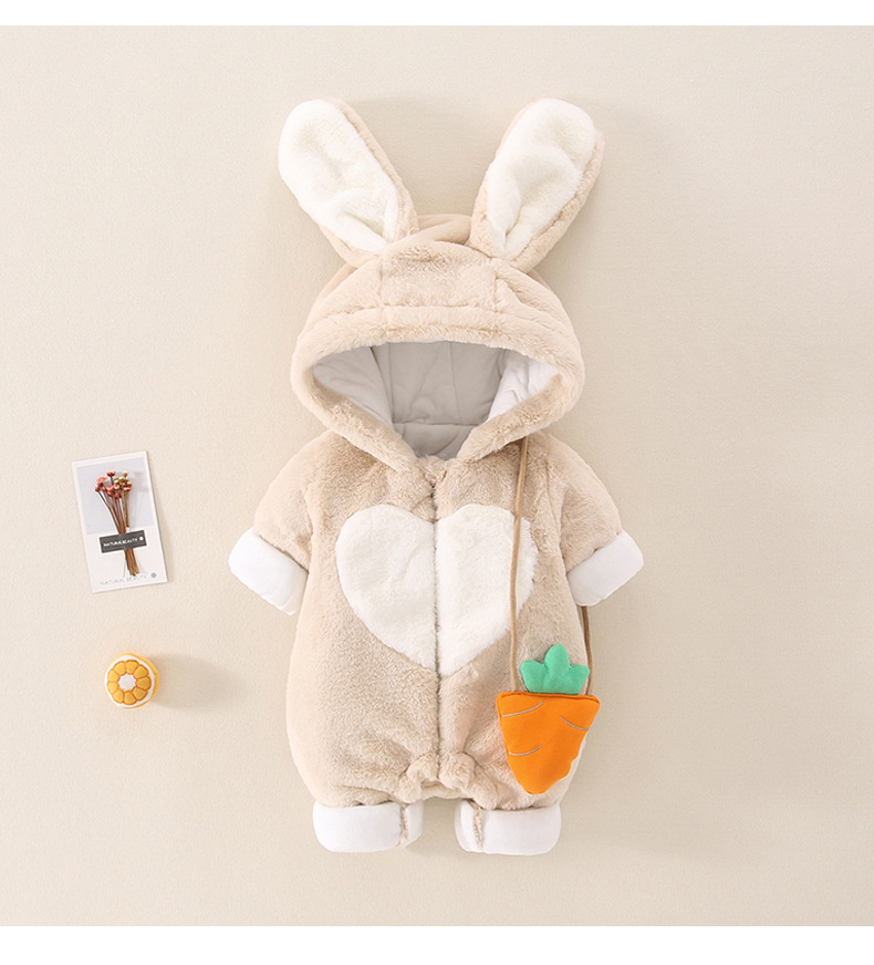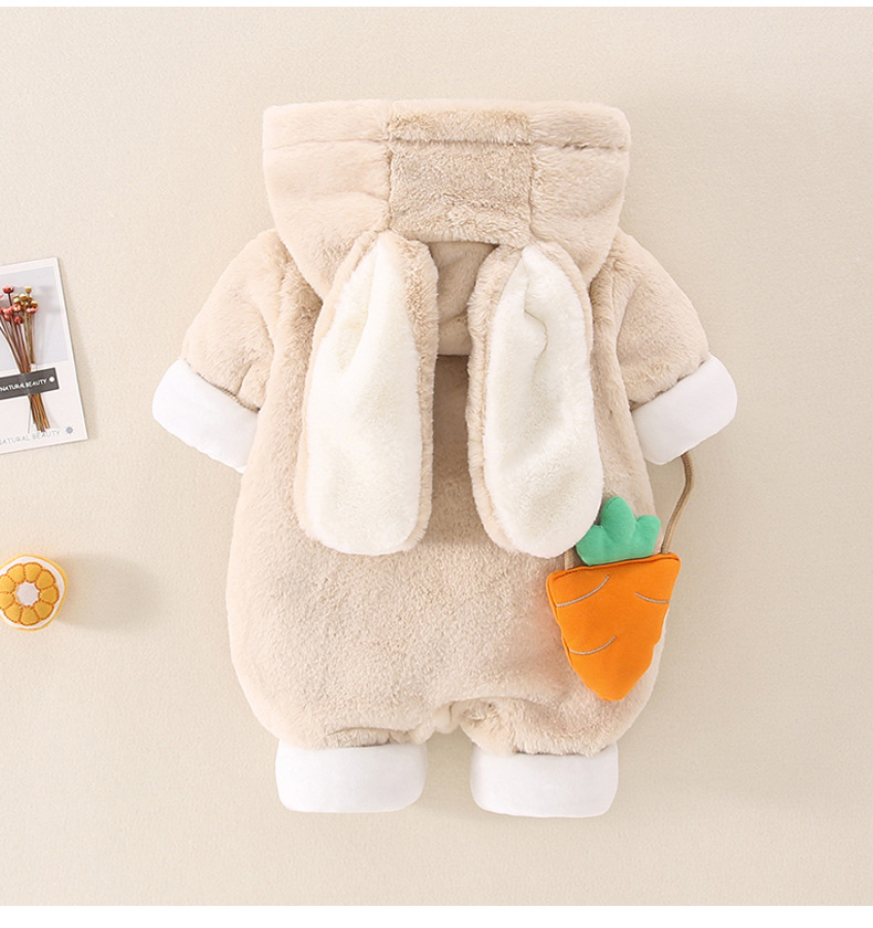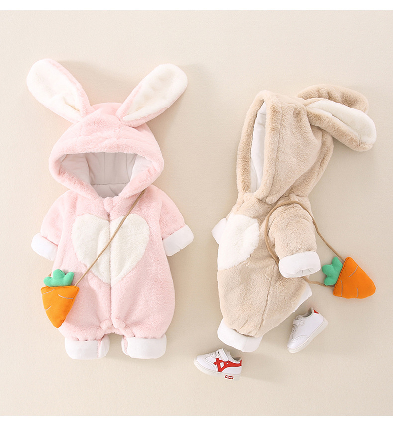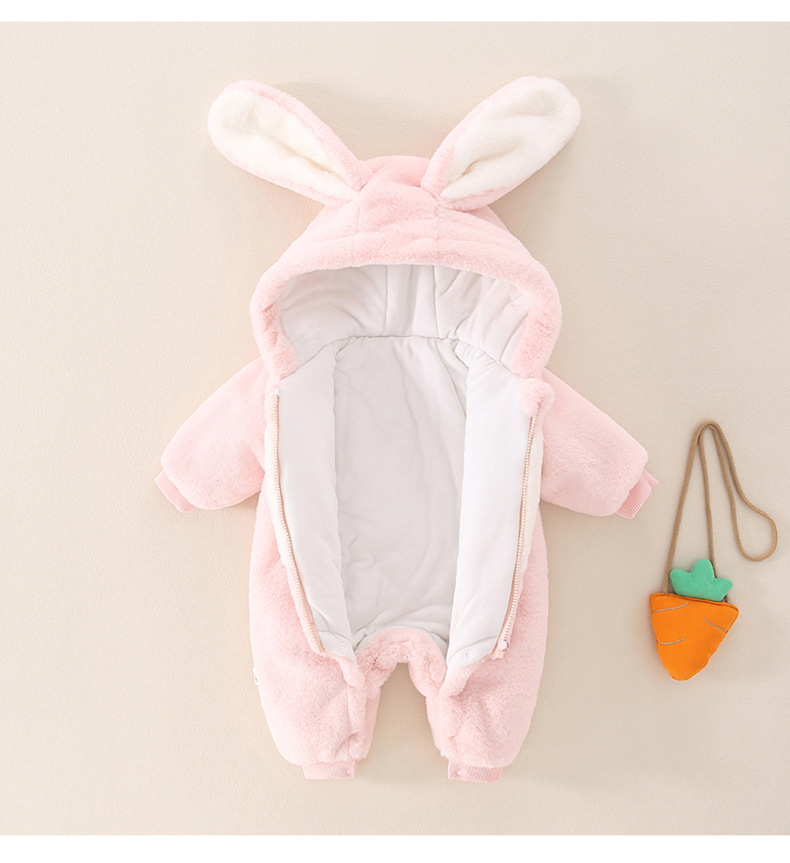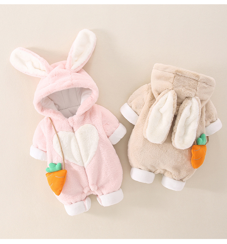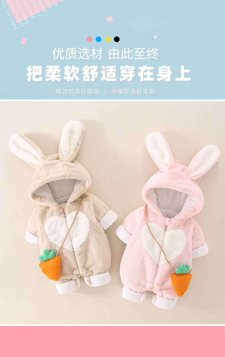 婴儿秋冬装衣服带帽加厚女宝宝外出抱衣满月公主连体衣可爱毛毛衣