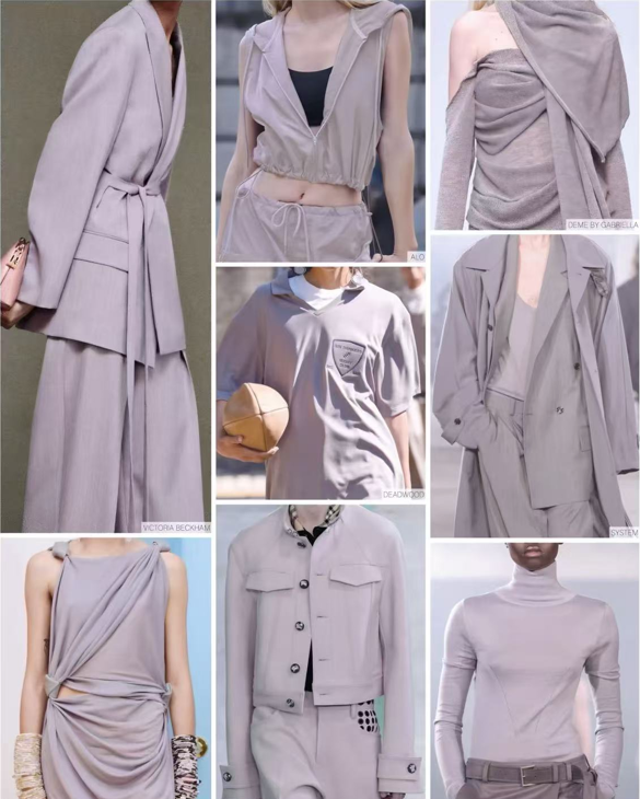 本季采用了低饱和度,融入大量灰白的淡紫色纱线,低调别致。营造出朦胧、舒缓、静谧的怀旧氛围。